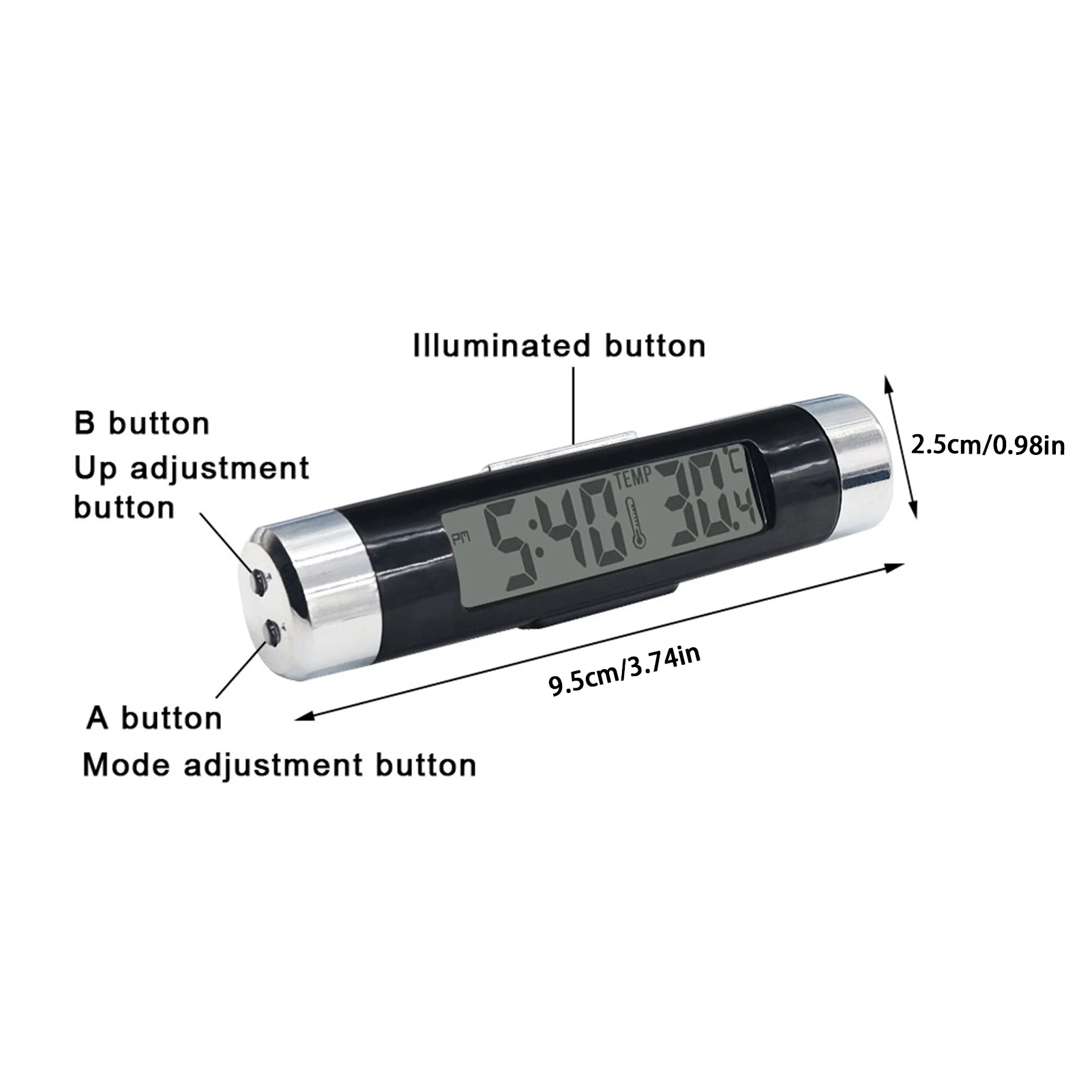 Новейший автомобильный термометр с светодиодным дисплеем и подсветкой. Отображение температуры и текущего времени автомобиля в реальном времени. Удобный и простой в использовании. Особенности: 1. Простая конструкция; Легко зажимайте лопасти воздуховыпускного отверстия. 2. Используйте батарею кнопки; Длительное время ожидания; Частая замена не требуется. 3. Функция времени позволяет вынимать мобильный телефон во время вождения, что обеспечивает безопасное вождение. 4. Функция освещения позволяет использовать его даже ночью. Не беспокойтесь. 5. Если у вас есть какие-либо вопросы, пожалуйста, свяжитесь с командой послепродажного обслуживания. Спецификация: Название: Автомобильный термометр для выхода воздуха Материал: ПП + электронные компоненты Цвет как показано Размер: около 8,6*2*2 см Упаковочный лист: 1 * термометр