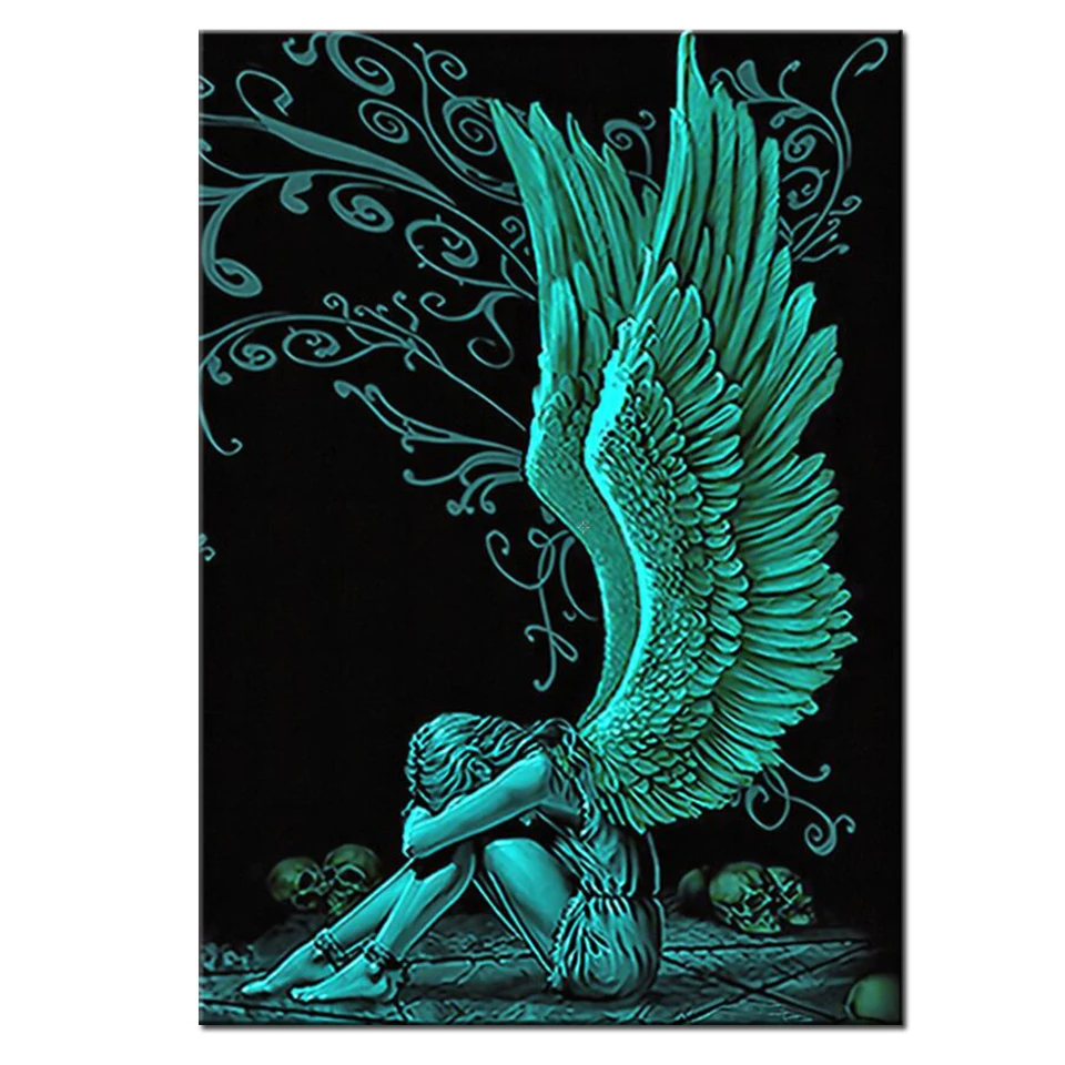 5D алмазная живопись сделай сам, ангел, зеленые крылья, Алмазная мозаика, распродажа стразы, вышивка крестиком A1716