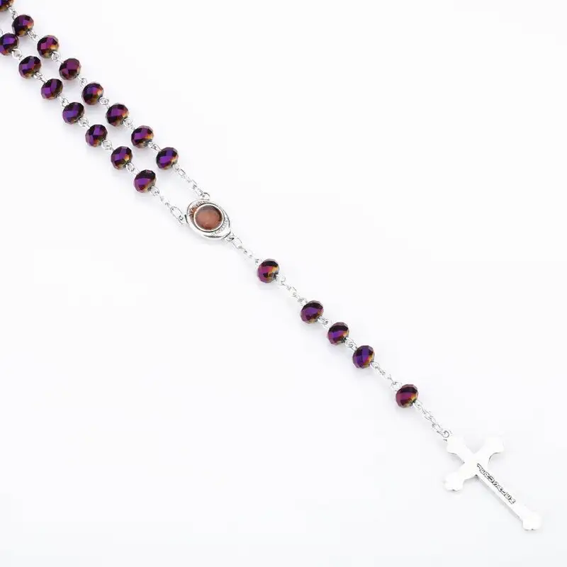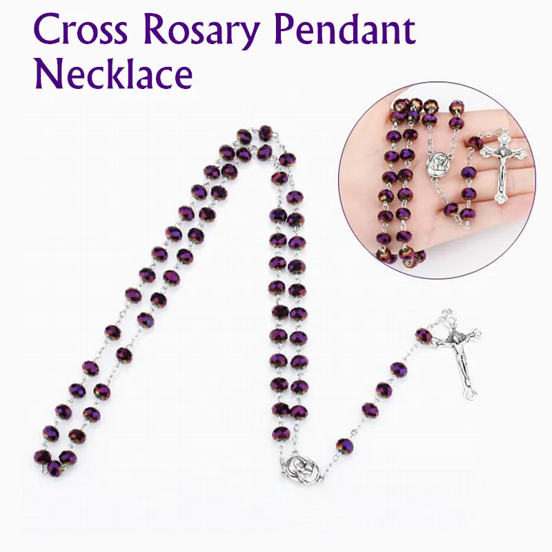 Винтажная религиозная фиолетовая бусина из хрустального стекла, крест, четки, подвеска унисекс, католицизм, молитва, Иисус, ожерелье с Девой Марией