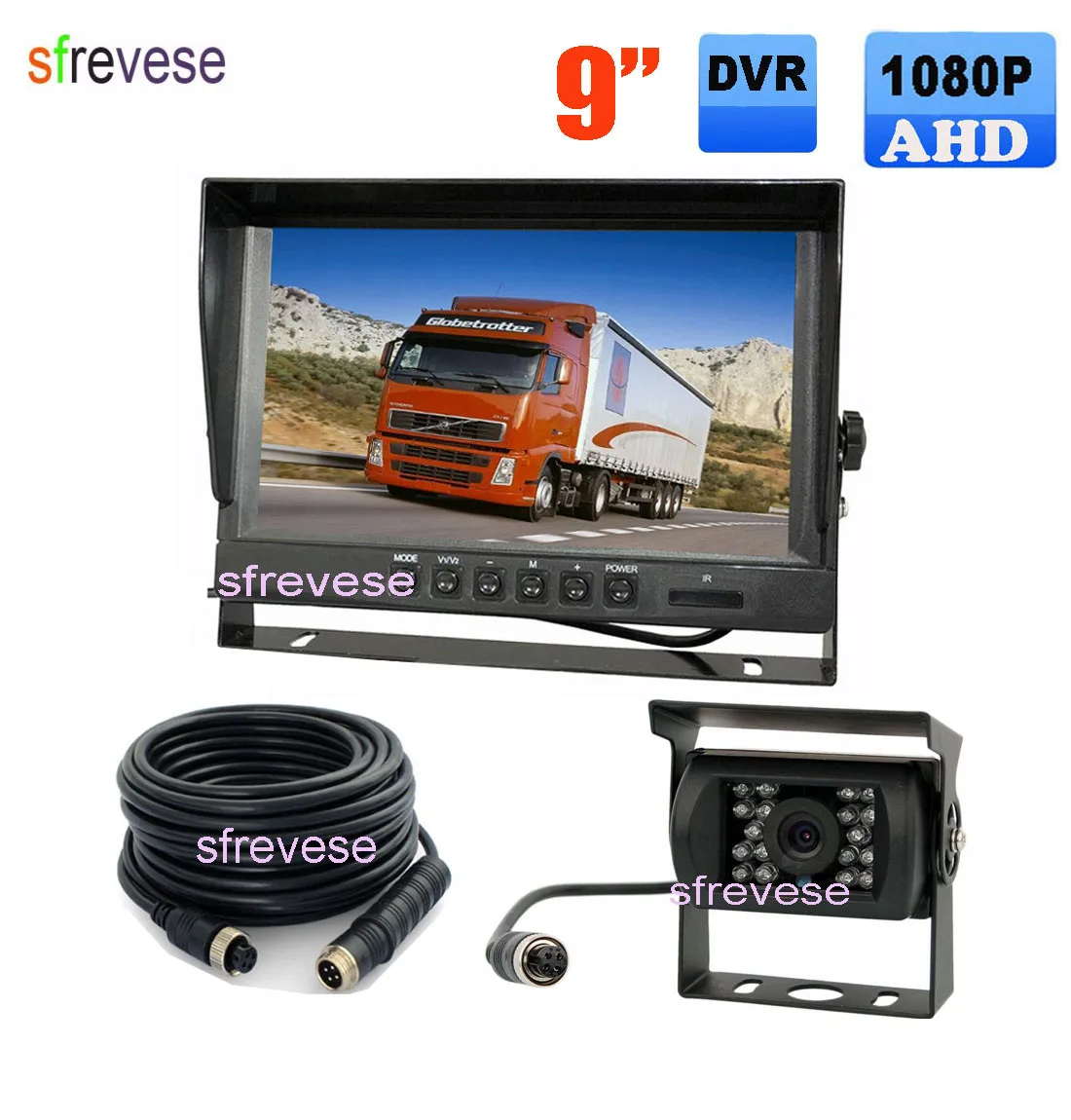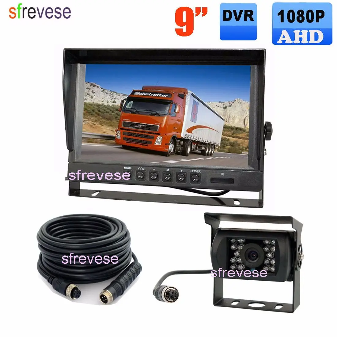 9 "IPS HD SD SDI DVR Запись 4Pin 2CH Разделение автомобильный монитор заднего вида + Водонепроницаемый AHD 1080P заднего вида с оборотным бэкапом Камера для шины для грузовиков
