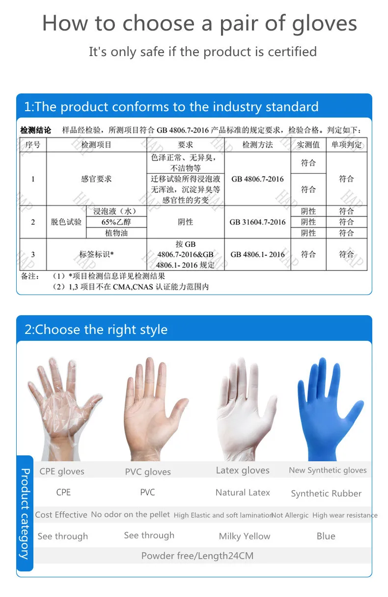 Одноразовые перчатки из ПВХ, латекса, для пищевых продуктов, для вы...