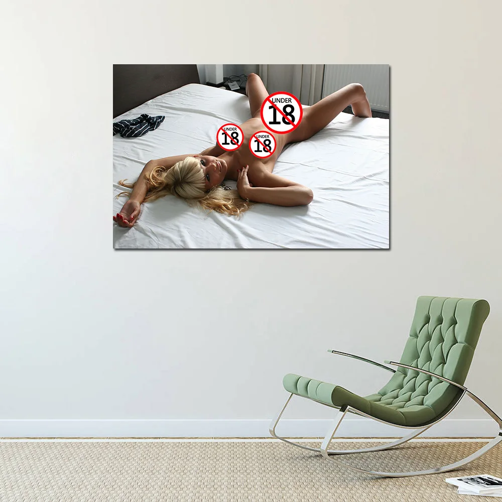 Красивая светлая девушка на кровати, холст, живопись, модель для взрослых, плакаты и принты, Настенная картина для гостиной, Декор без рамки