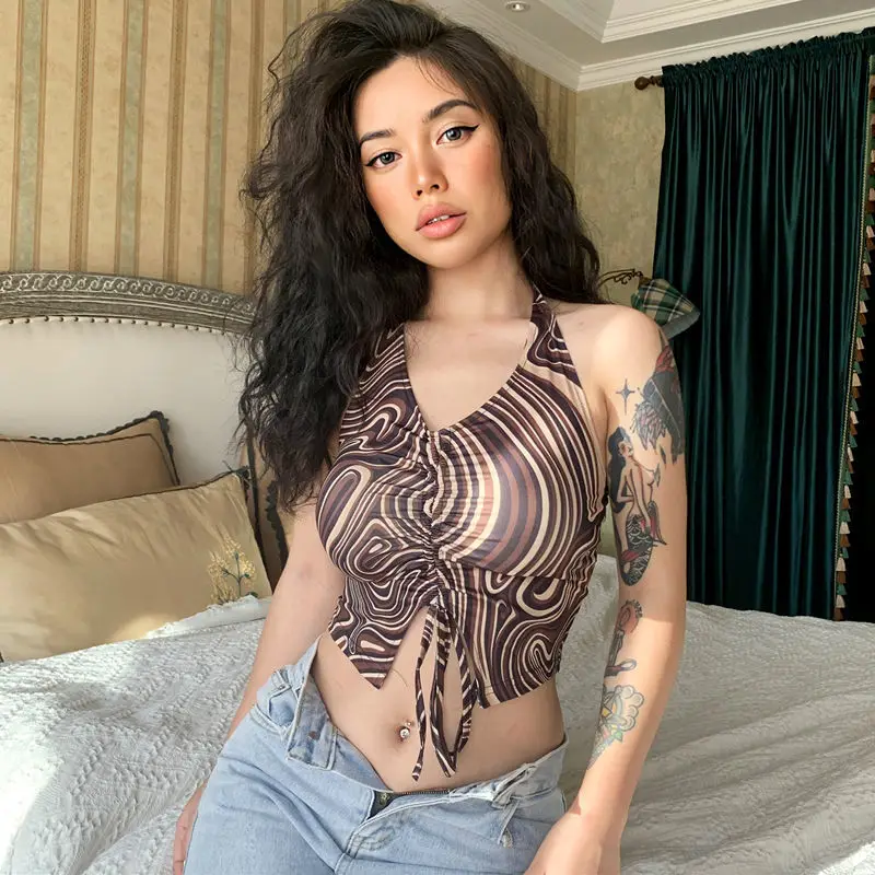 2021; Принт в виде волнистых Y2K коричневого цвета на бретельках со...