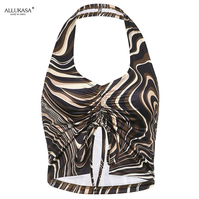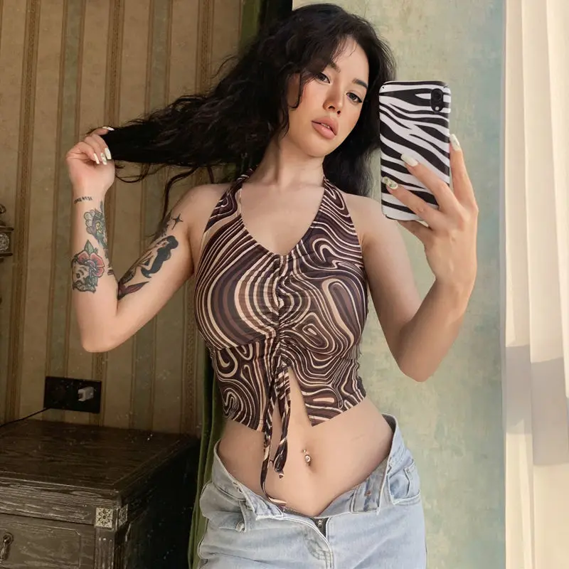 Женский камисоль с принтом пейсли и волн Y2k, коричневый тонкий кор...