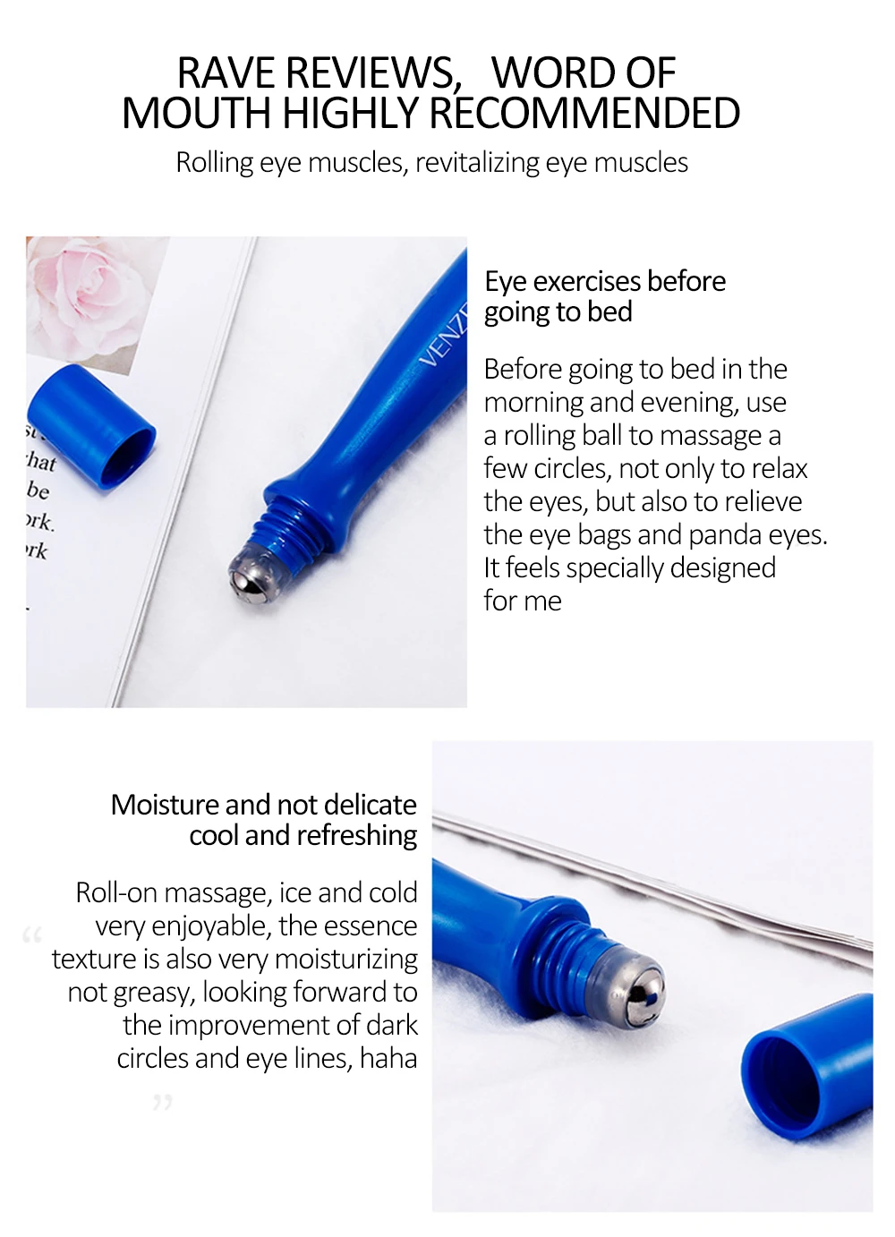 Подвижные мышцы глаз, восстанавливающие мышцы глазУпражнения для глаз перед сномПеред тем как ложиться в кровать утром и вечером, используйте катящийся шарик для массажа нескольких кругов, не только Для Расслабления Глаз, но и для снятия мешков для глаз и глаз панды. Он кажется специально разработан для меняВлага и не деликатная, прохладная и ОсвежающаяРулонный массаж, лед и холод, очень приятный, текстура эссенции также очень увлажняющая, не жирная, с нетерпением жду улучшения темных кругов и линий глаз, ха-ха