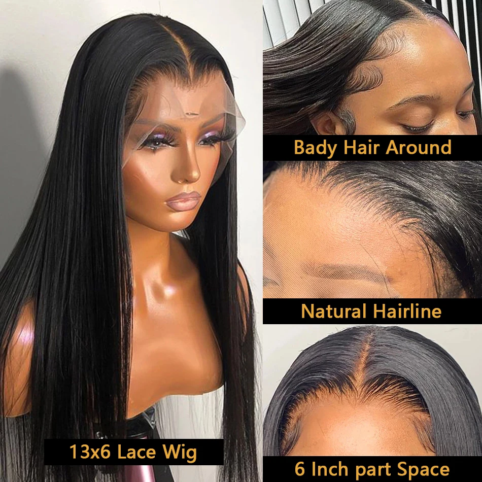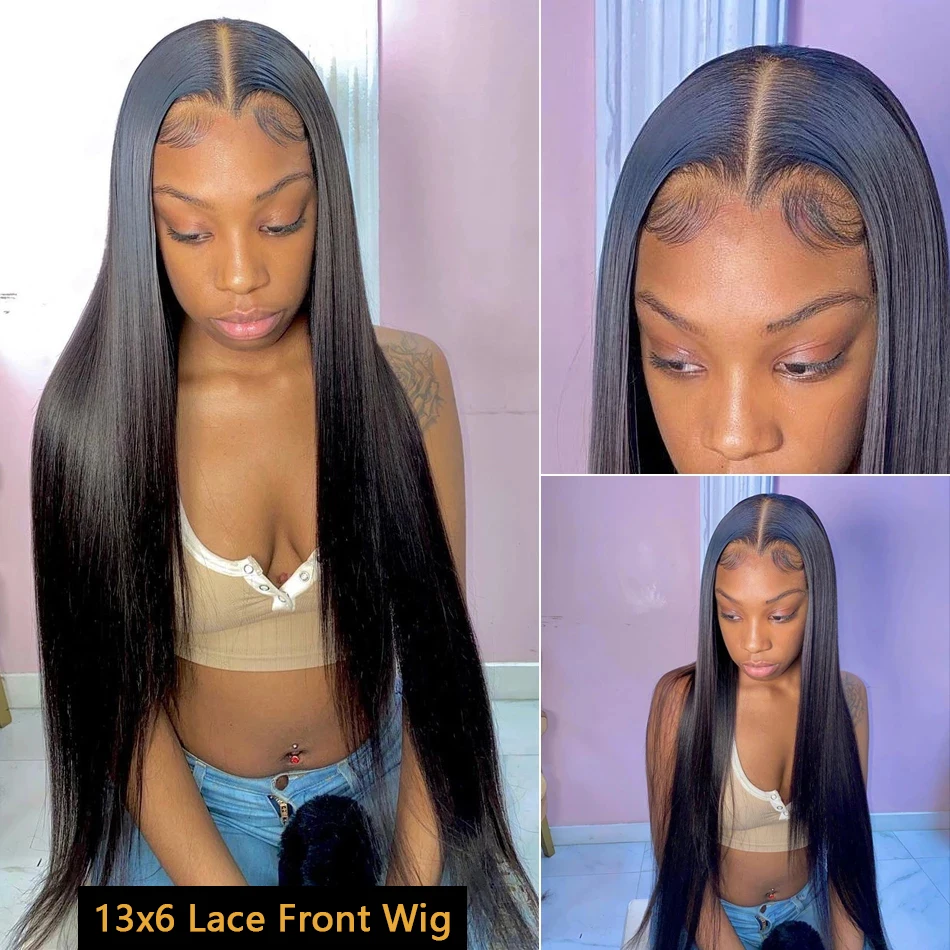 Шелковистые прямые волосы 13x6, прозрачные HD кружевные передние парики из натуральных волос 28, 30, 32 дюйма для чернокожих женщин, предварительно выщипанные бразильские волосы