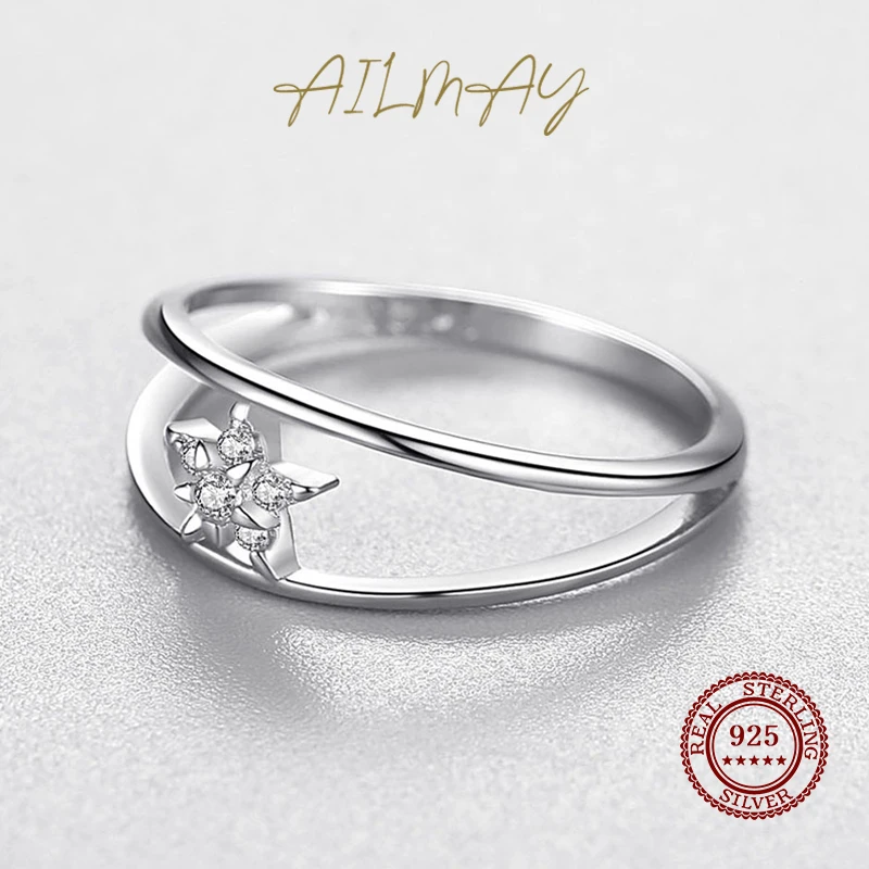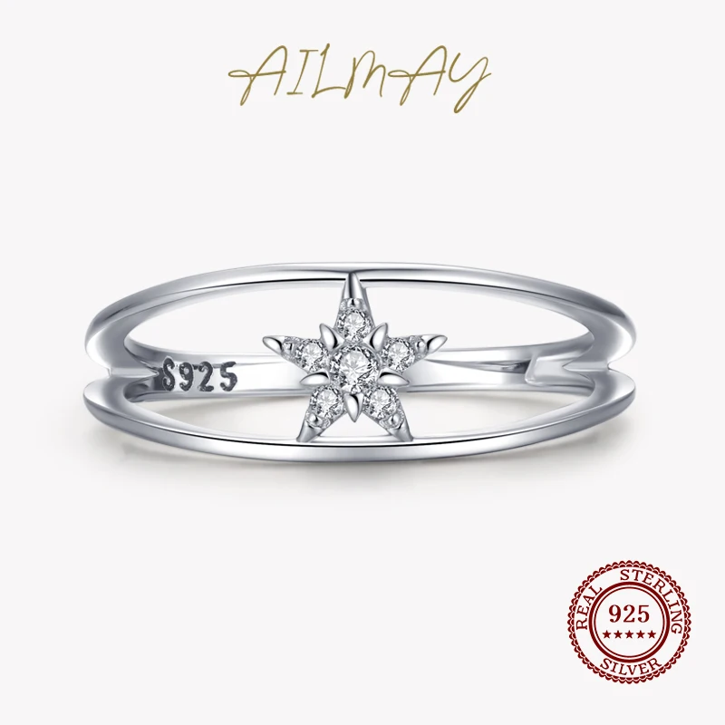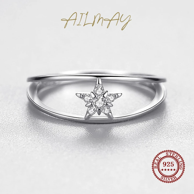Ailmay Новое поступление модное кольцо со звездами из стерлингового серебра 925 пробы с прозрачным цирконием двухслойные кольца для женщин Свадебные обручальные ювелирные изделия