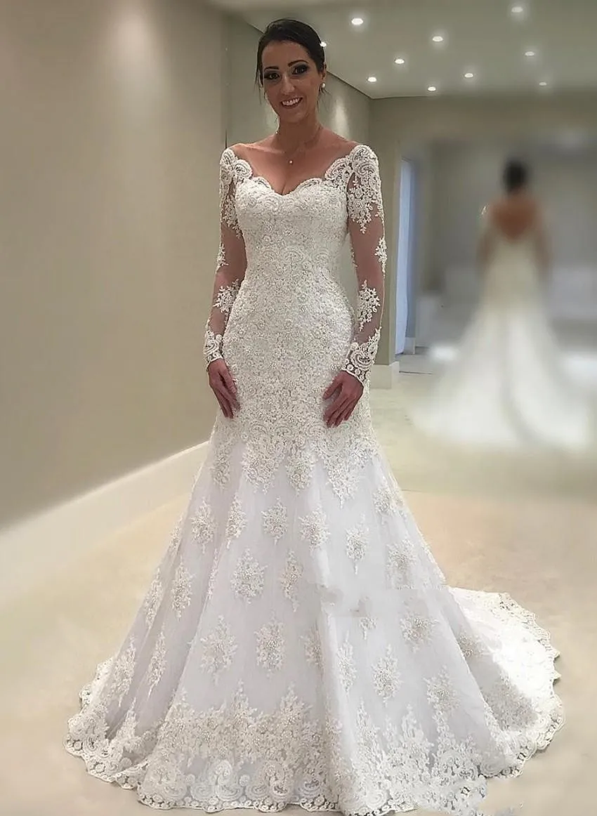 ANGELSBRIDEP свадебное платье с длинным рукавом Русалка халат Марие винтажная аппликация шлейф для придворного шлейфа Формальные Свадебные платья для невесты Лидер продаж
