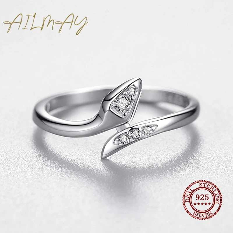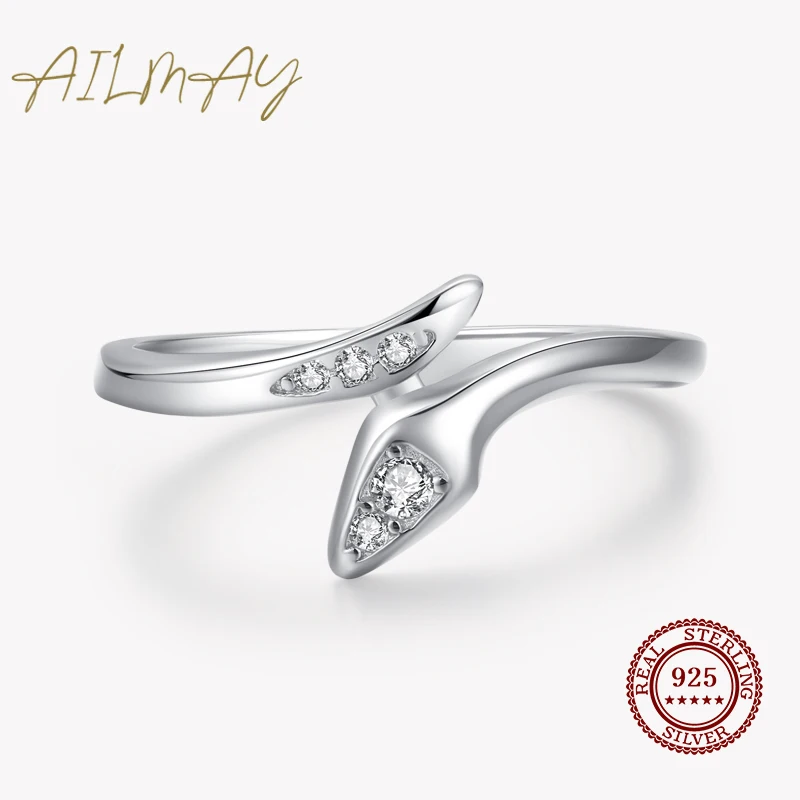 Ailmay Новое поступление 925 стерлингового серебра змея Форма открытое регулируемое кольцо на палец для женщин, для девочек вечерние аксессуары для ювелирных изделий