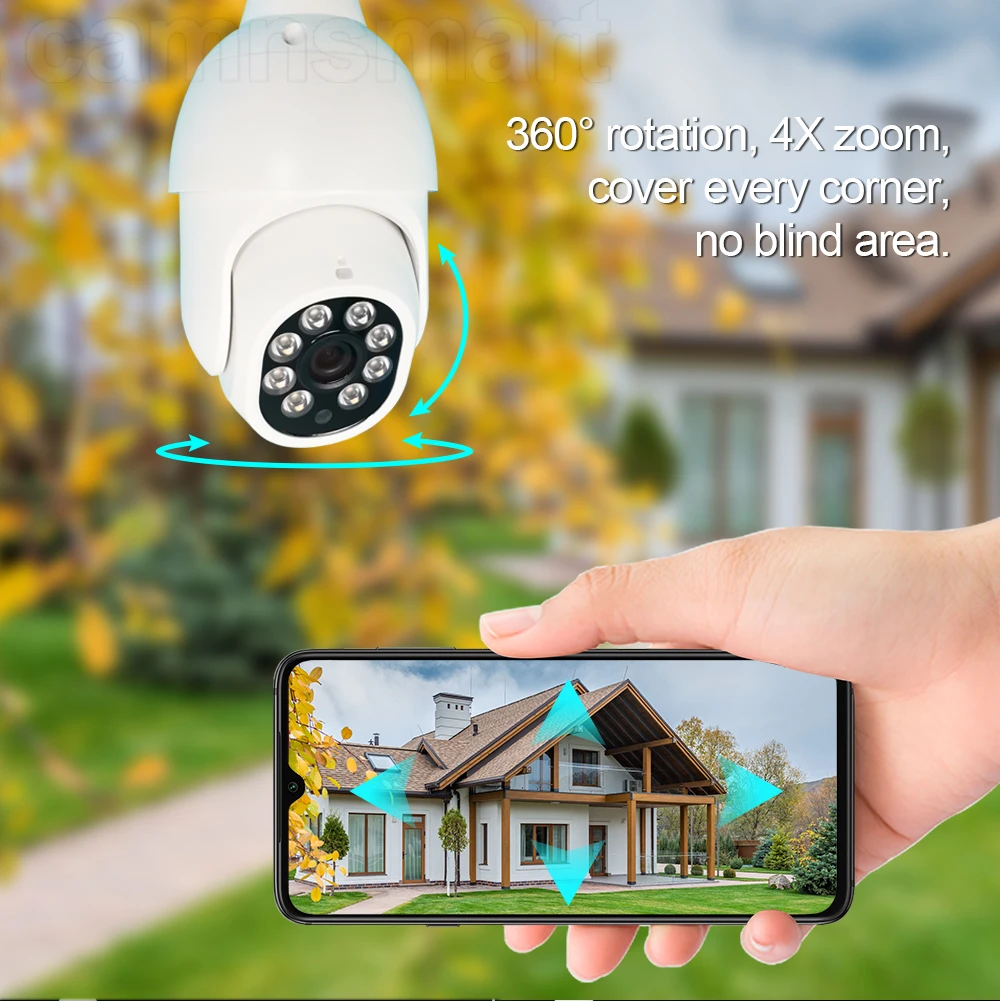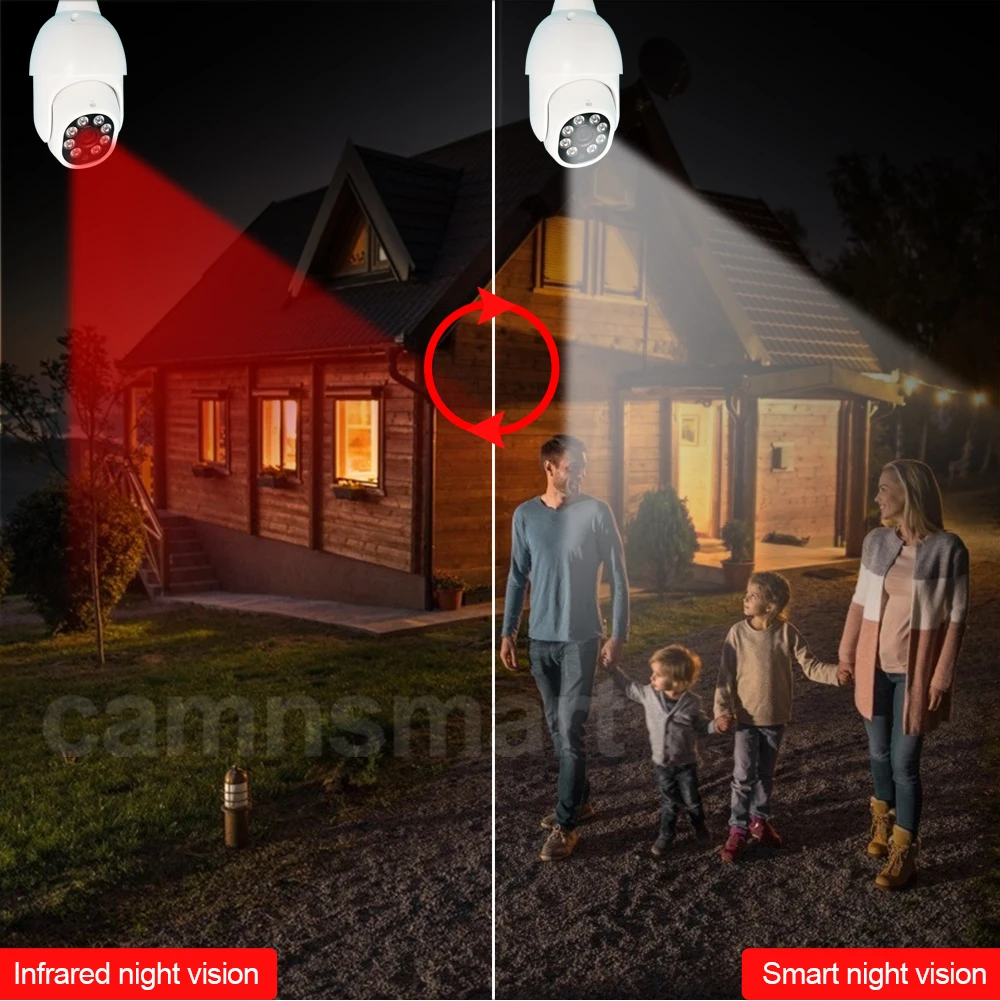 Уличная камера 5 Мп с Wi-Fi и светодиодной лампой E27, полноцветное двухстороннее двустороннее общение, автоматическая дорожка, видеонаблюдение Ycc365plus
