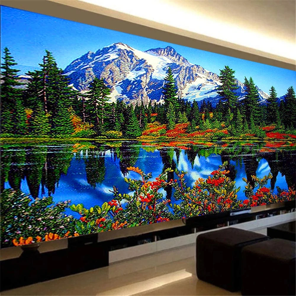 Большая алмазная живопись 5D полная квадратная круглая Алмазная вышивка мозаика зеленые горы реки природа проход вход украшение X57