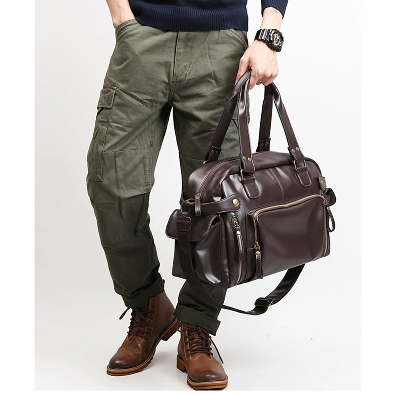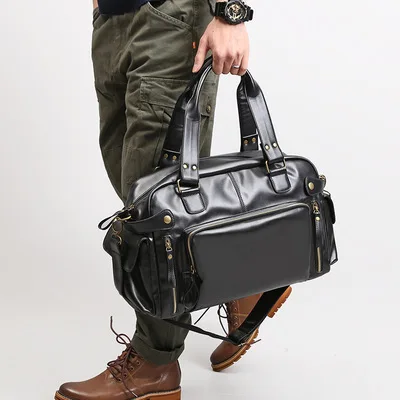 Роскошная большая Мужская сумка из искусственной кожи в английском ретро стиле, мужская деловая сумка-мессенджер, дорожная сумка через плечо для фитнесвечерние