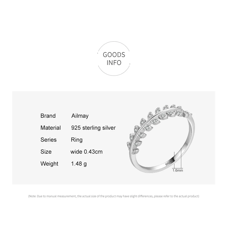 Ailmay 925 стерлингового серебра Классический Винтаж счастливое Дерево листьев оливкового дерева листья кольцо на палец для обручального кольца для Для женщин Юбилей, ювелирное изделие, подарок