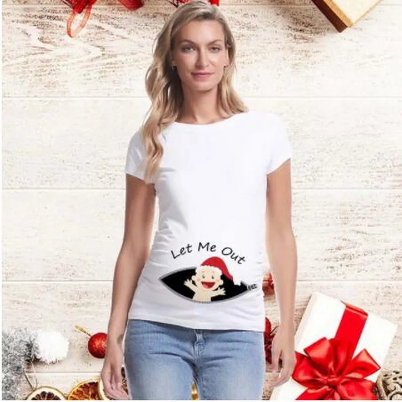 Рождественская Футболка для беременных с коротким рукавом топы с му...