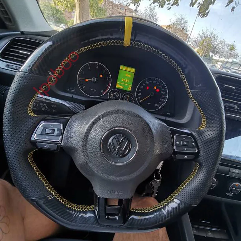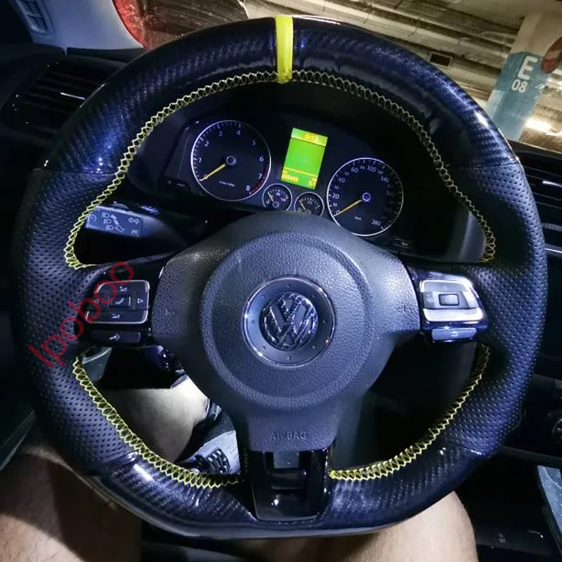 Чехол 5D из углеродного волокна и кожи с отверстиями для рулевого колеса, подходит для Volkswagen Golf 6 GTI MK6 Polo GTI Scirocco R