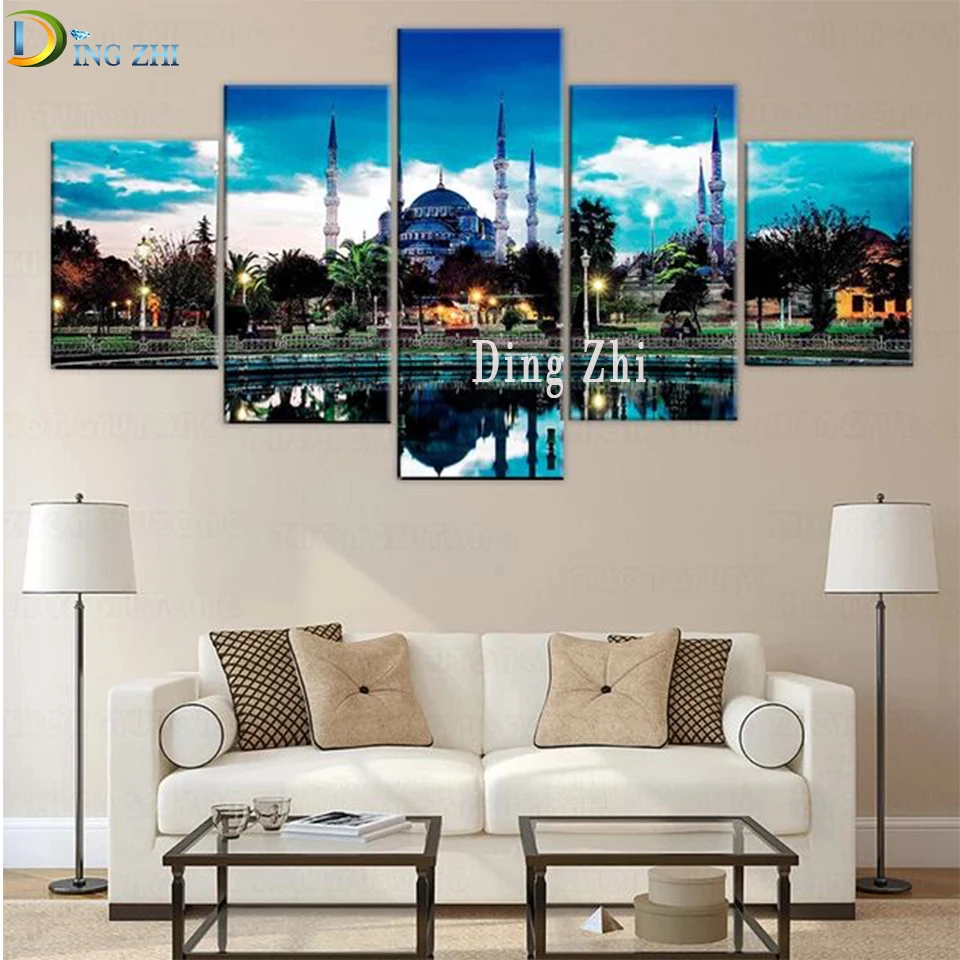 5D алмазная живопись, 5 шт., символ Стамбульской синей мечети, алмазная вышивка, квадратная круглая дрель, многопанельная мозаичная картина