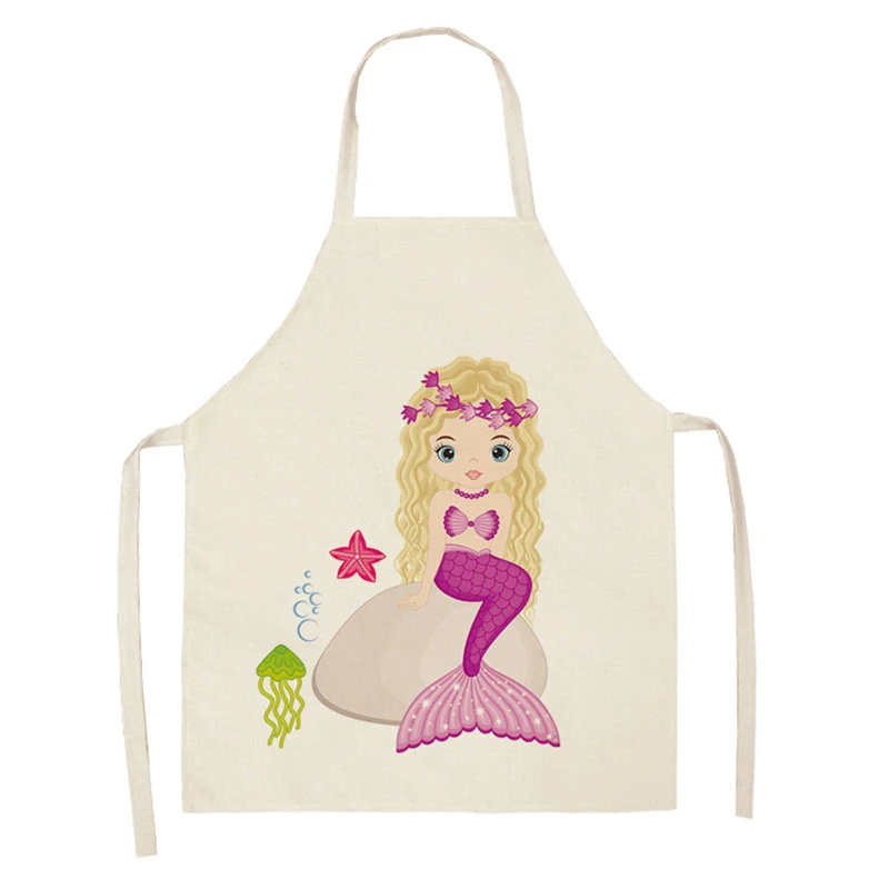 Детский фартук кавайная девушка Русалка печатная Женская хлопковая льняная передняя одежда для дома готовка выпечка Талия нагрудник 47x38