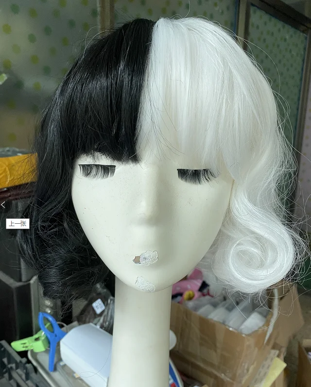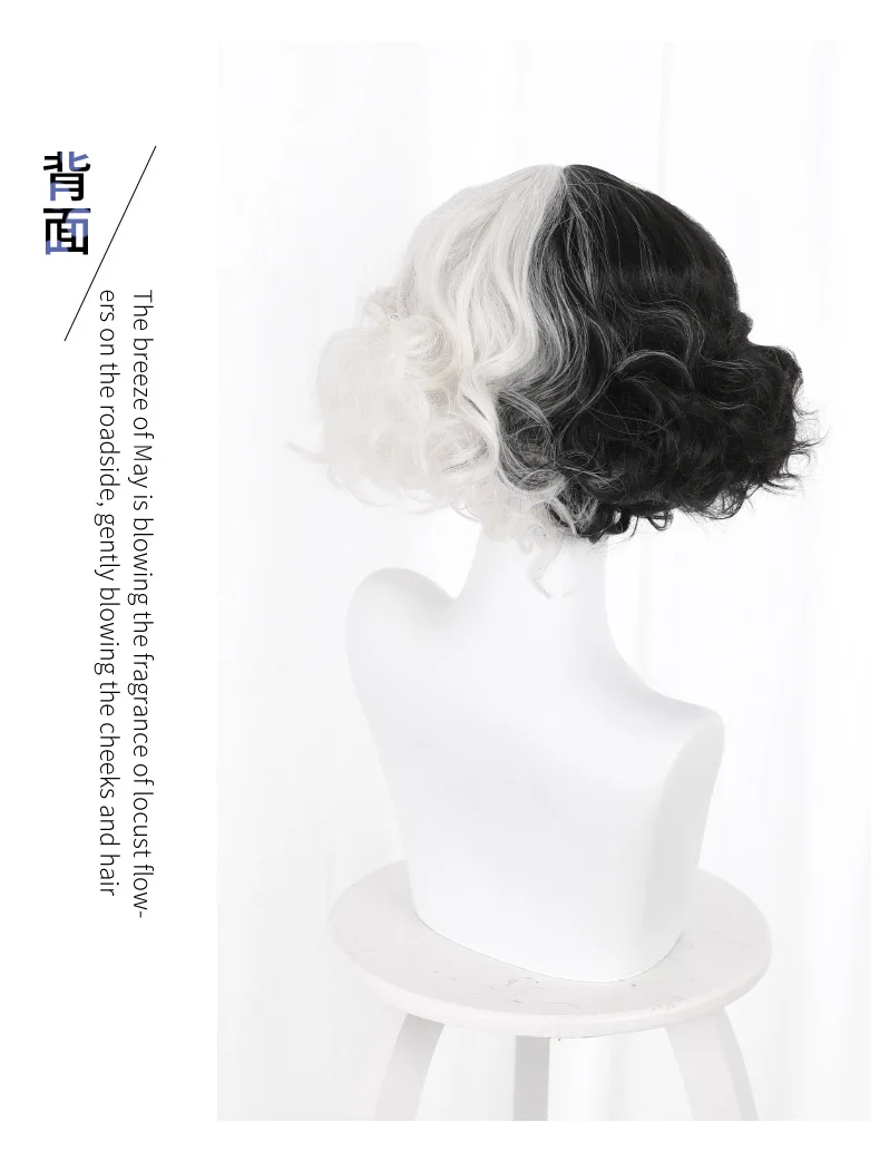 Cruella De Vil Kuila, половина черного цвета, половина сотни маленьких коротких вьющихся париков, парики, шапки для изготовления париков