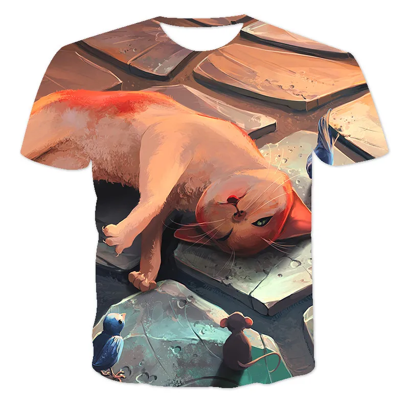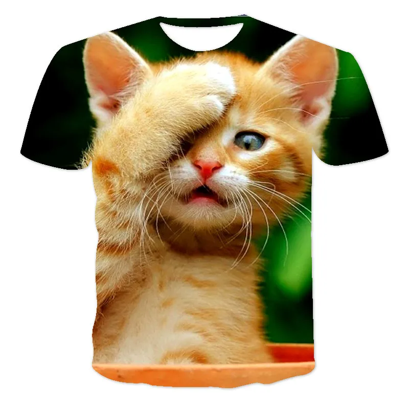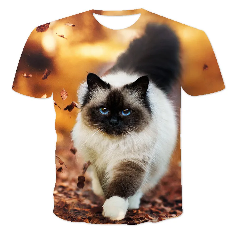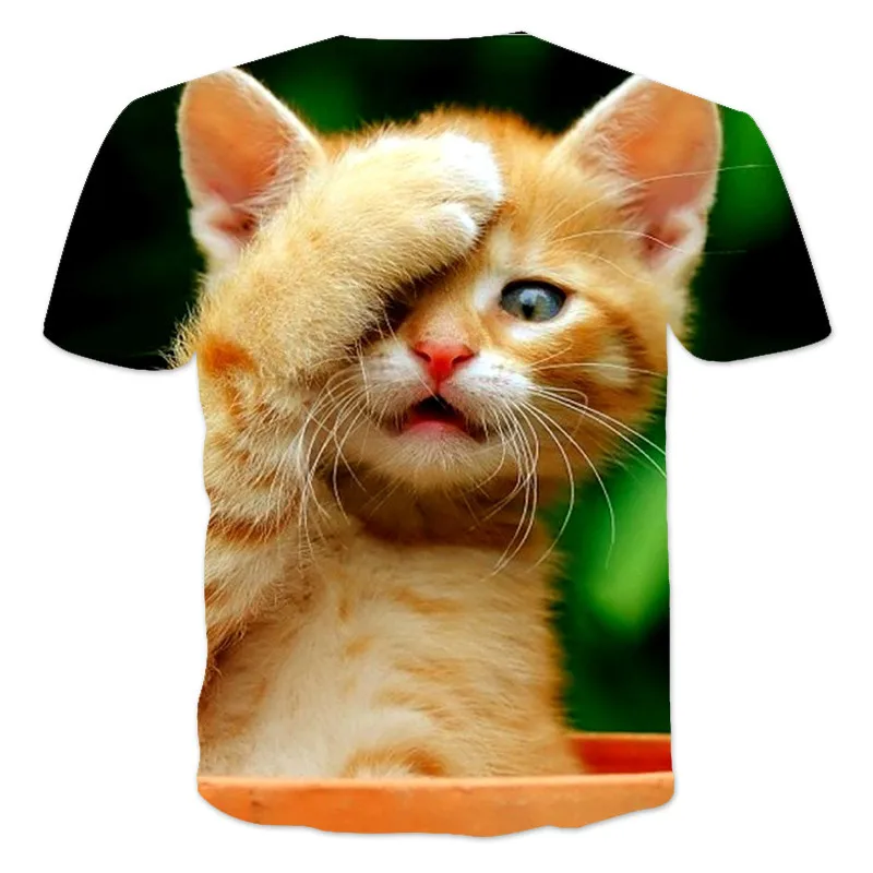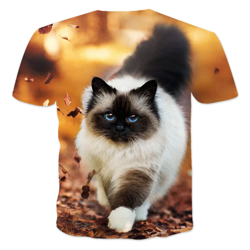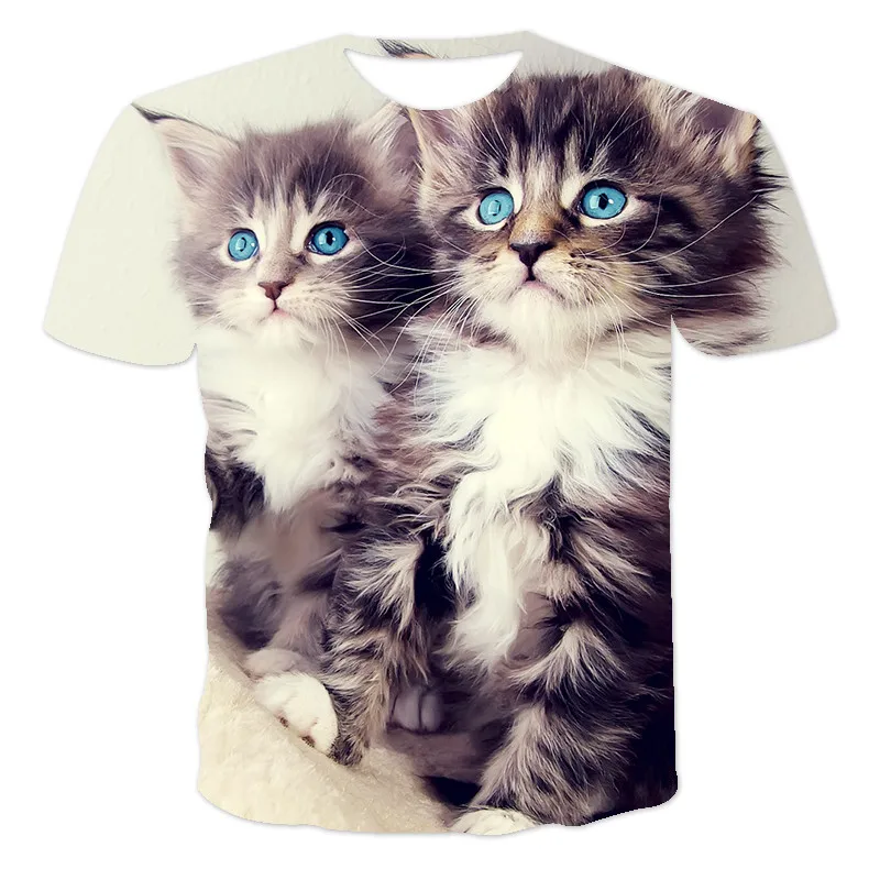 Футболка с круглым вырезом для мужчин и женщин, Повседневная футболка оверсайз с коротким рукавом и принтом Каваий кошки, лето 2021