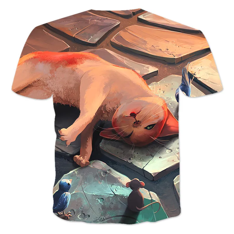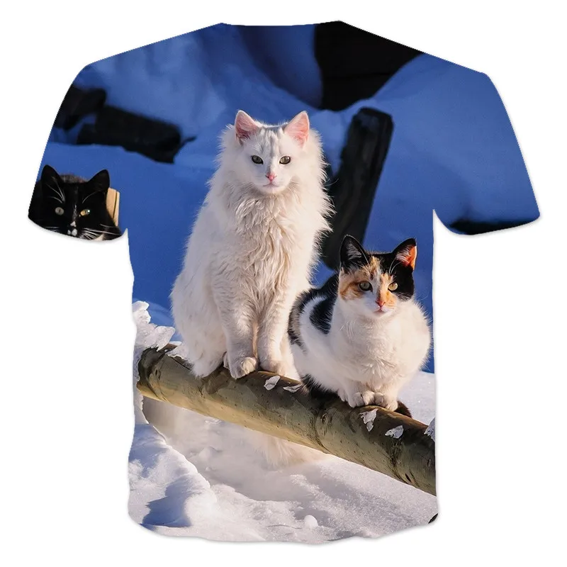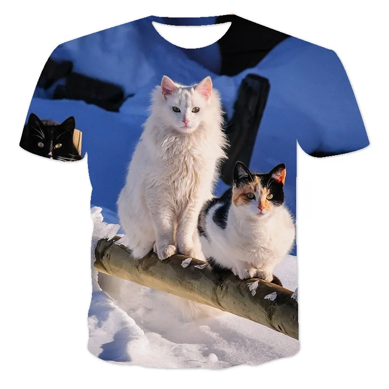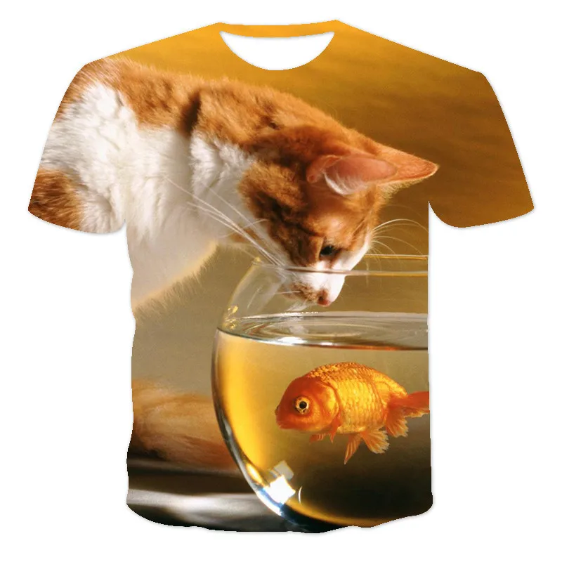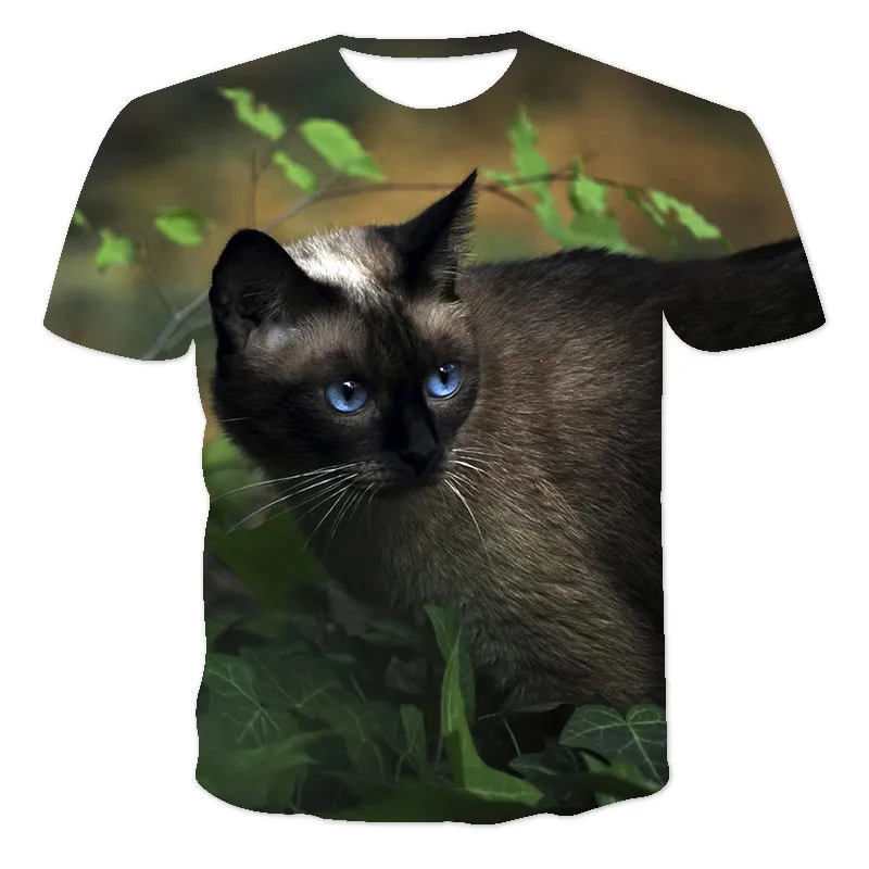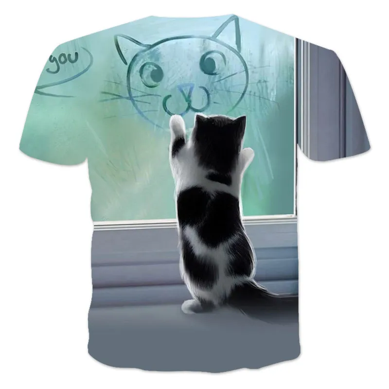 Футболка с круглым вырезом для мужчин и женщин, Повседневная футболка оверсайз с коротким рукавом и принтом Каваий кошки, лето 2021
