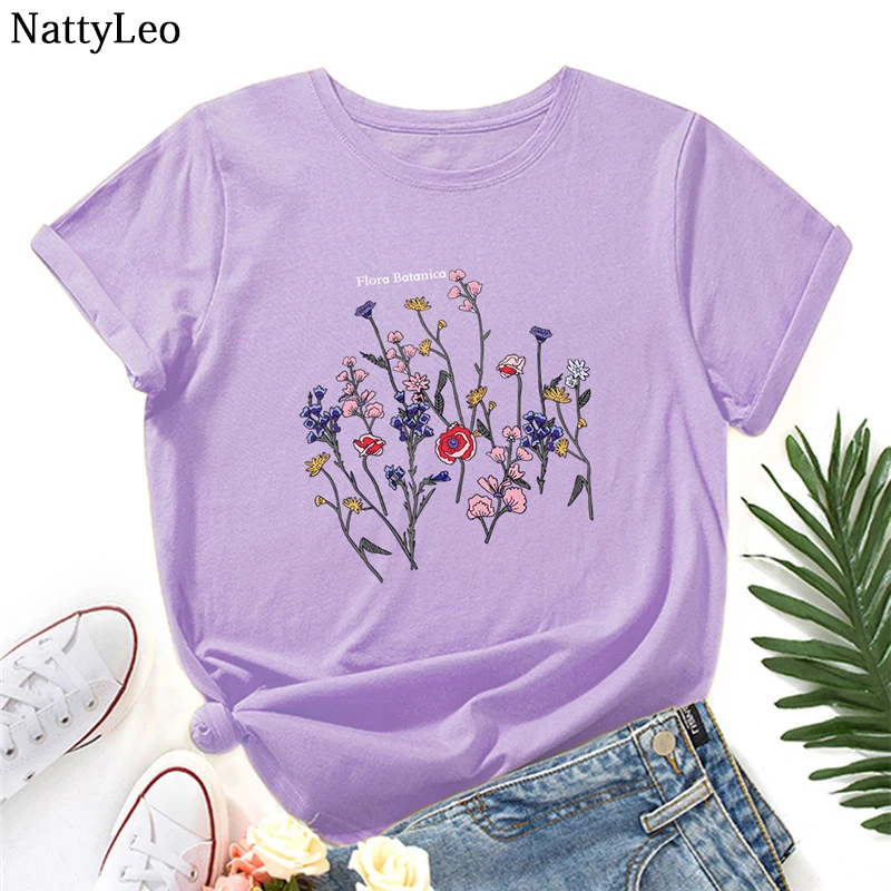 Футболка женская оверсайз из 100% хлопка, с цветочным принтом