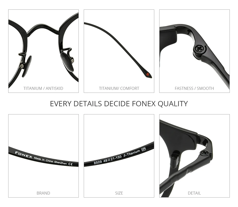 FONEX Оправа для очков в титановой оправе для мужчин и женщин, 8509