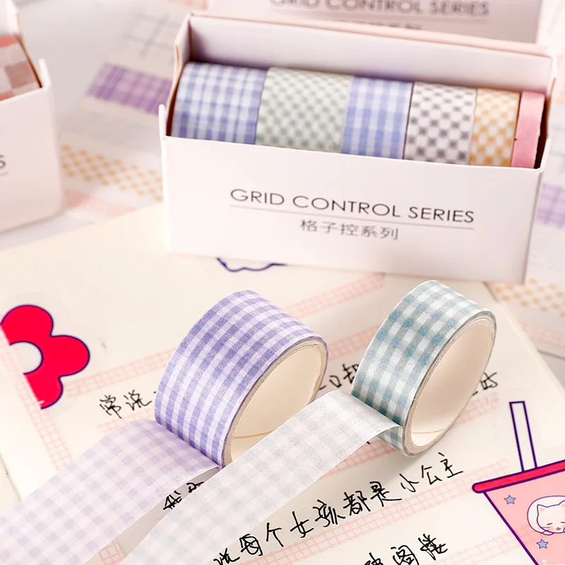 5 шт.компл. Цветные Бумажные Ленты Kawaii Grid Washi Tape наклейки ...