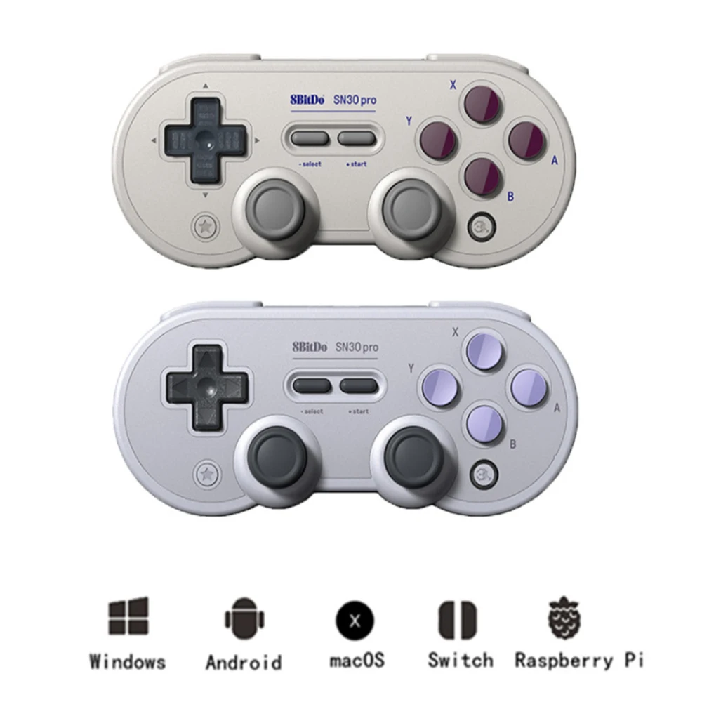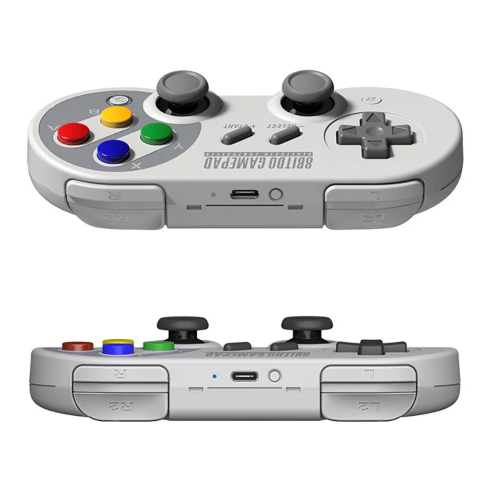 8bitdo SN30 Pro беспроводной Bluetooth игровой контроллер, с классическим D-pad и расположение кнопок, напоминает вам о необходимости зарядки Ретро 8-битный игровые консоли из 80-х годов и 90-х. 8bitdo SN30 Pro беспроводной Bluetooth-Совместимость с операционными игровой контроллер работает с вашим телефоном, чтобы играть в приложения, используя игровой контроллер с реальным тактильным входом. Он также поддерживает Windows, Android, macOS, пар, intendo Switch. 8 битдо SN30 Pro беспроводной Bluetooth-совместимый игровой контроллер является лучшим для борьбы, съемки действий и эмулятора игр.
