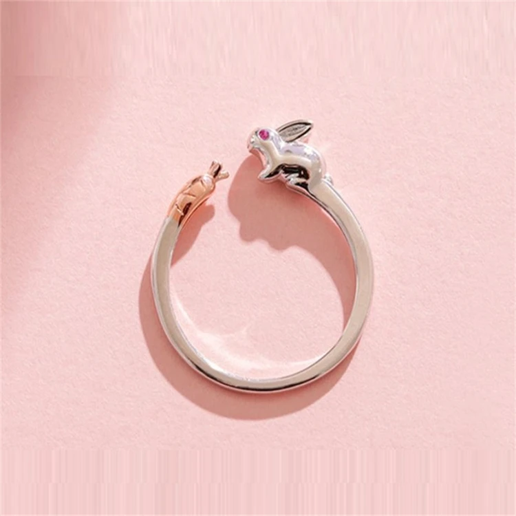 Креативные открытые кольца в виде кролика, из серебра 925 пробы