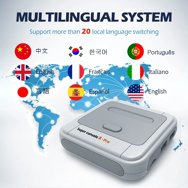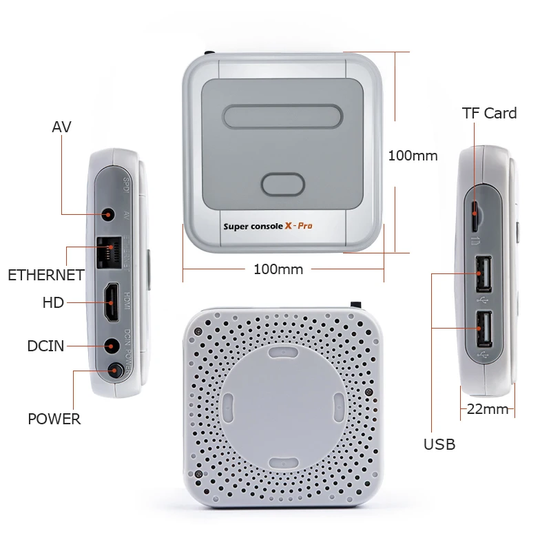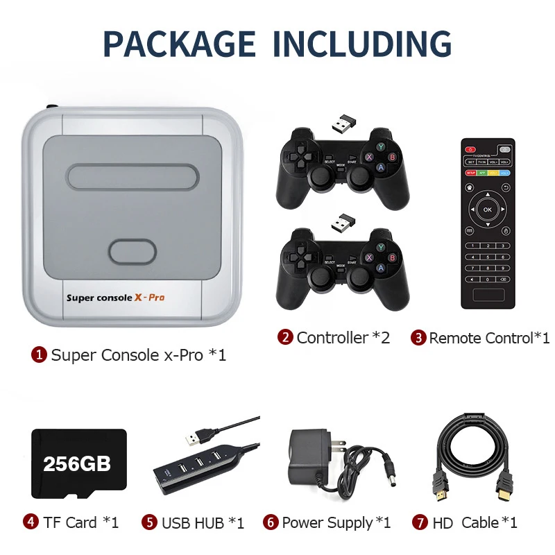 Супер консоль X PRO * 1Tf-карта * 1Контроллер * 2Зарядное устройство * 1Кабель HD * 1Руководство пользователя * 1Примечание: мы отправим вам источник питания с соответствующими спецификациями в соответствии с вашей страной.