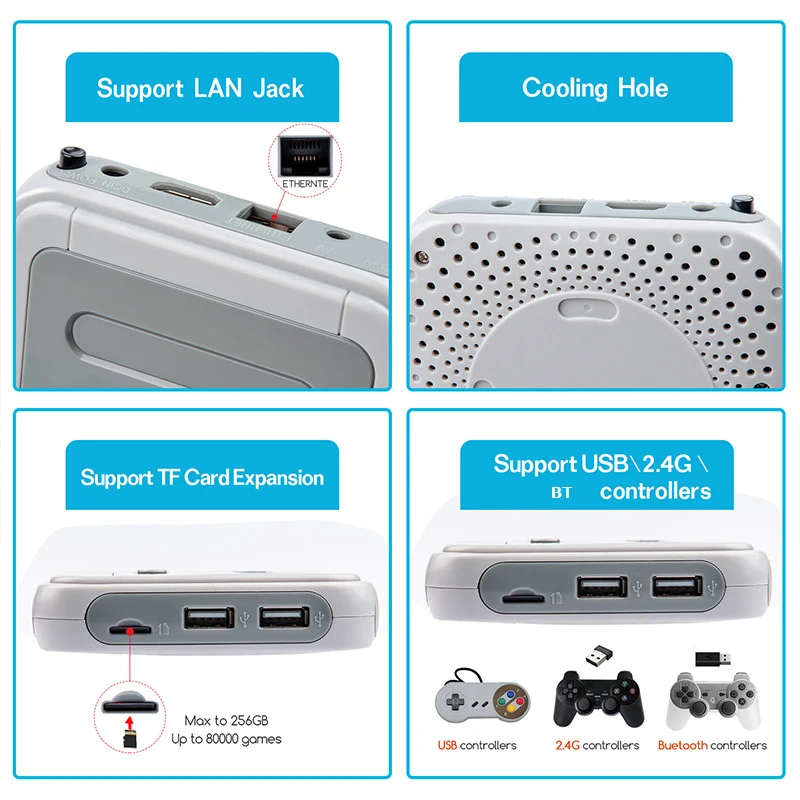 Встроенный 50 + эмуляторов, идеально подходит для PS1/N64/GB/MAME etc.256G предустановленных 50000 + Ретро-игр