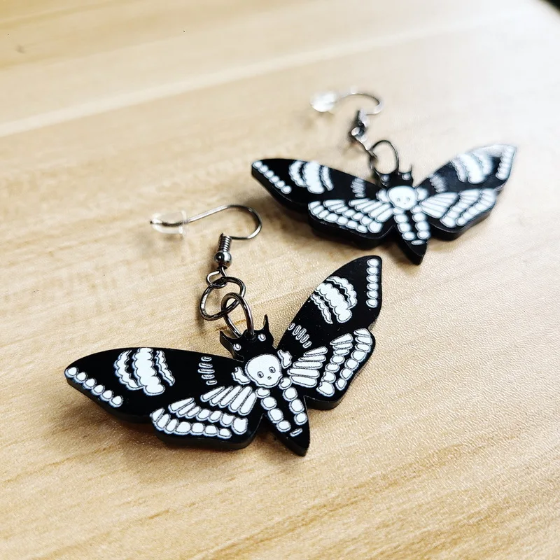 Черные темные акриловые серьги в виде черепа, моли, насекомых, бабо...