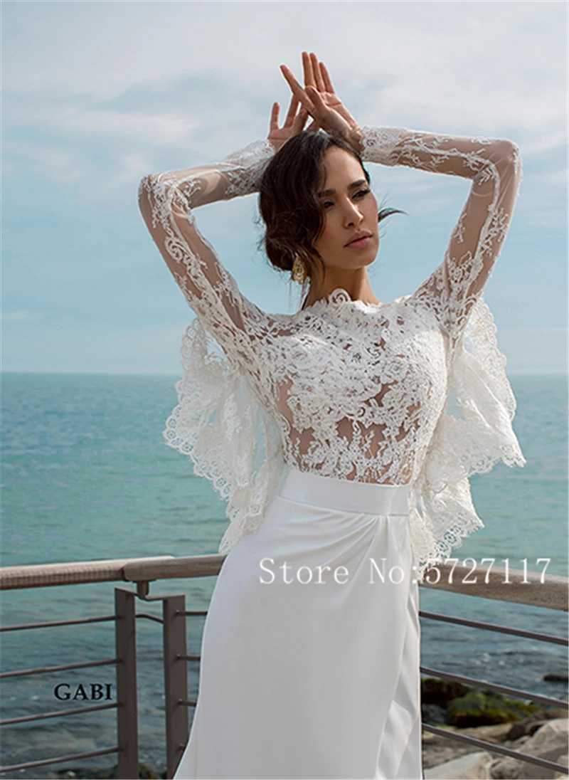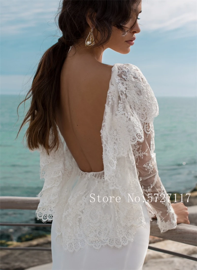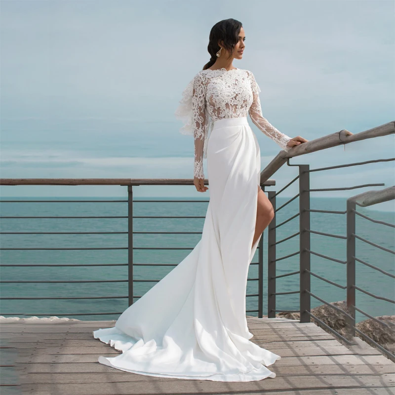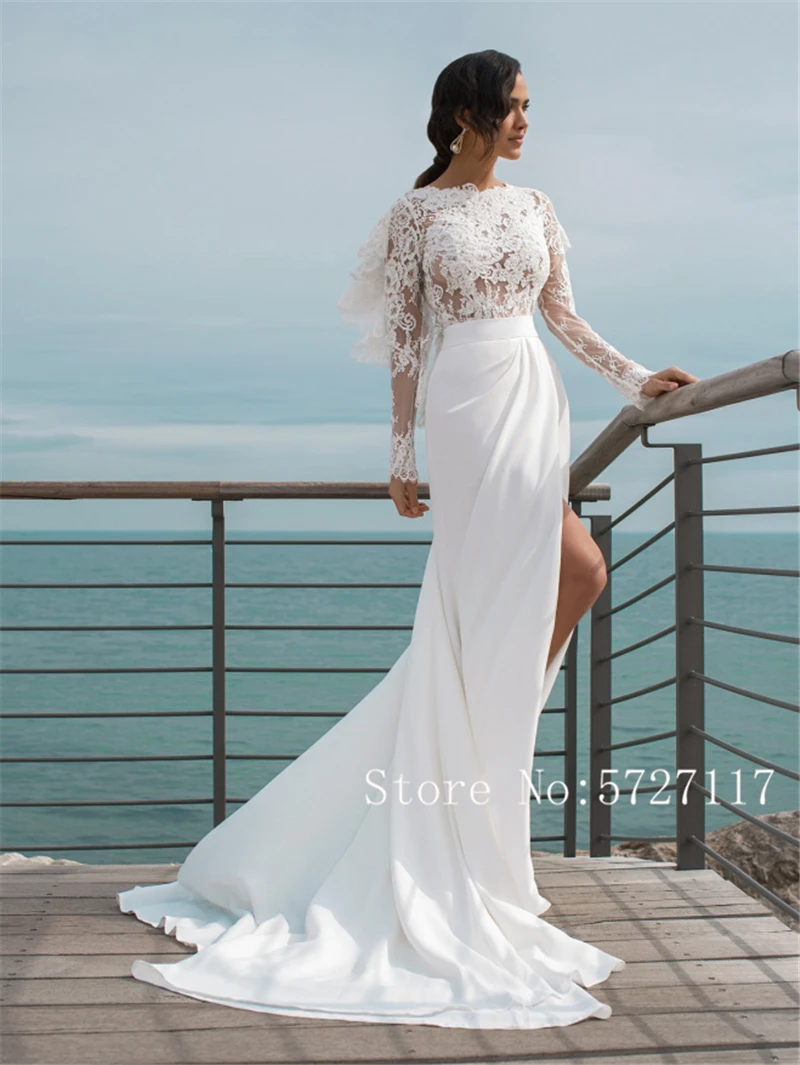 Женское прозрачное кружевное платье It's yiiya, белое винтажное платье с длинными рукавами, открытой спиной и высоким разрезом на лето 2019