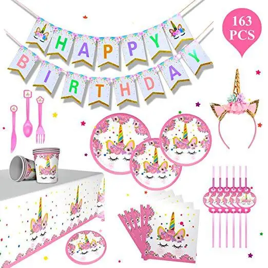 Одноразовая посуда в виде единорога, принадлежности для вечерние в виде единорога, бумажная тарелка, украшение для вечеринки в честь Дня рождения ребенка, девочки