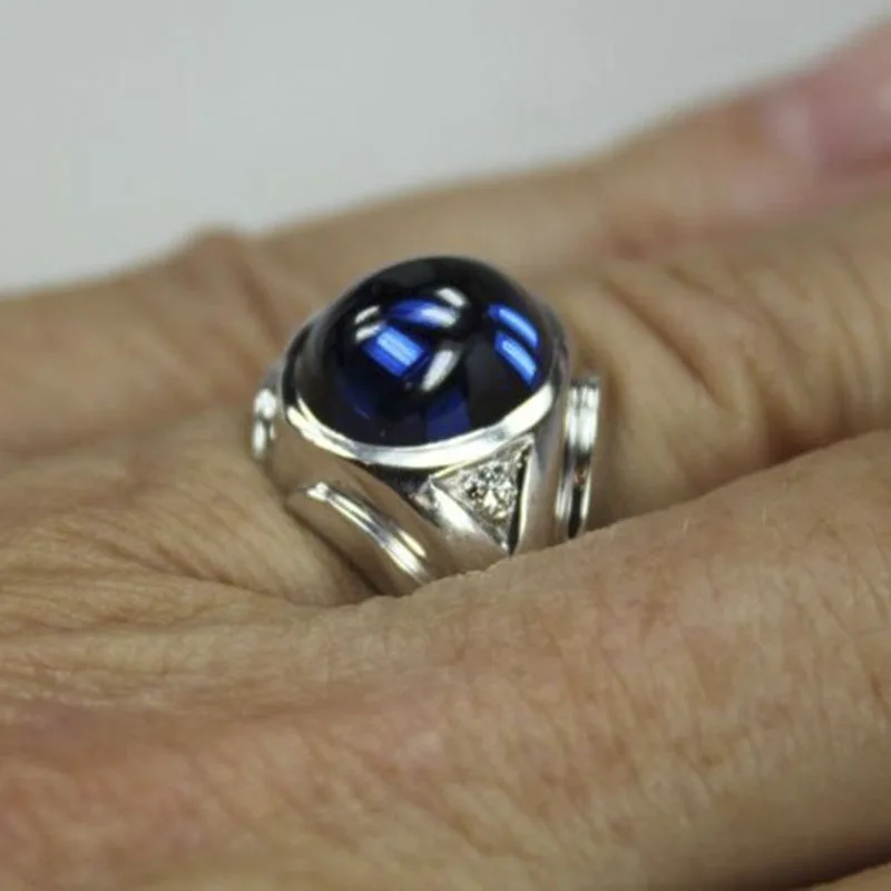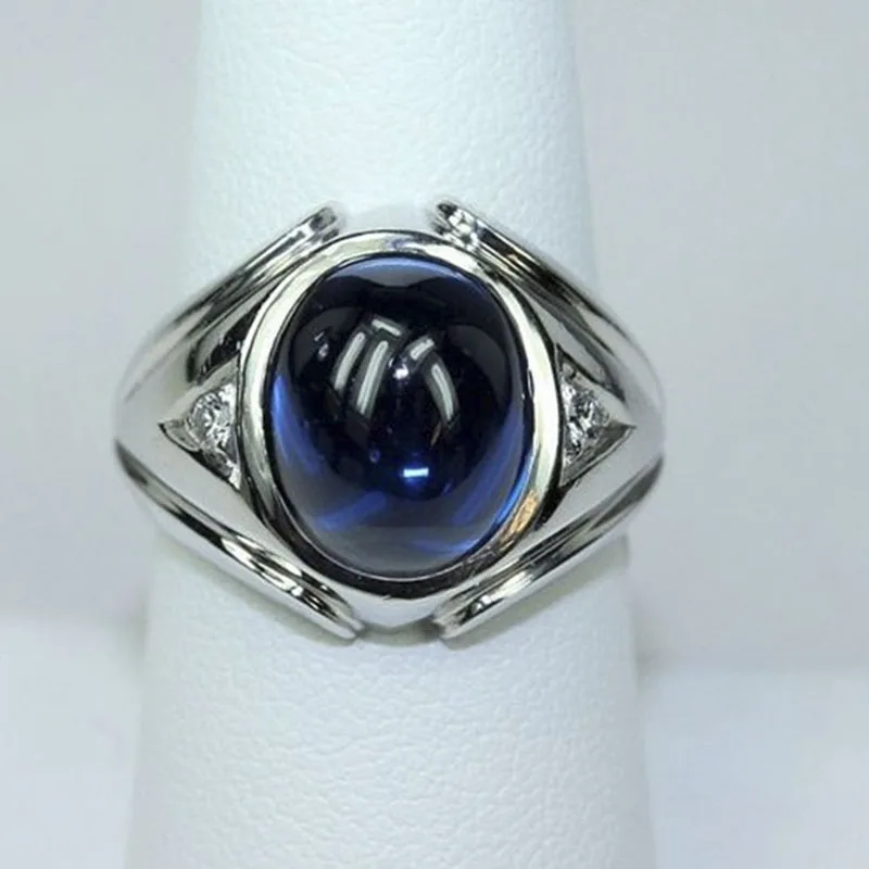 Уникальный с блестящим серебряным корпусом Цвет Синий Геометрический овальной формы с украшением в виде кристаллов циркон для мужчин сплава кольцо для ключей мужской вечерние ювелирные изделия аксессуары Размеры на возраст от 5 до 11 лет