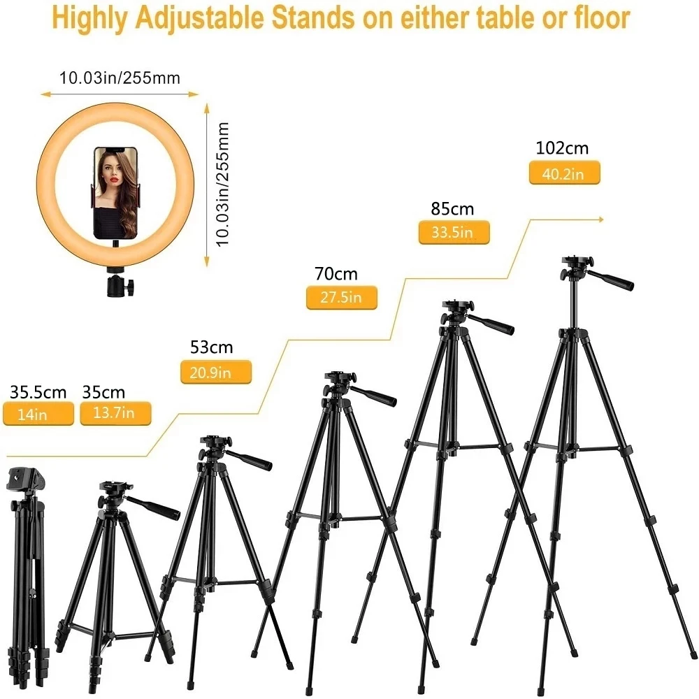 Кольцевой светодиодный светильник для селфи, лампа 26 см с регулируемой яркостью, кольцесветильник светильник для фото и макияжа, держатель для телефона, штатив