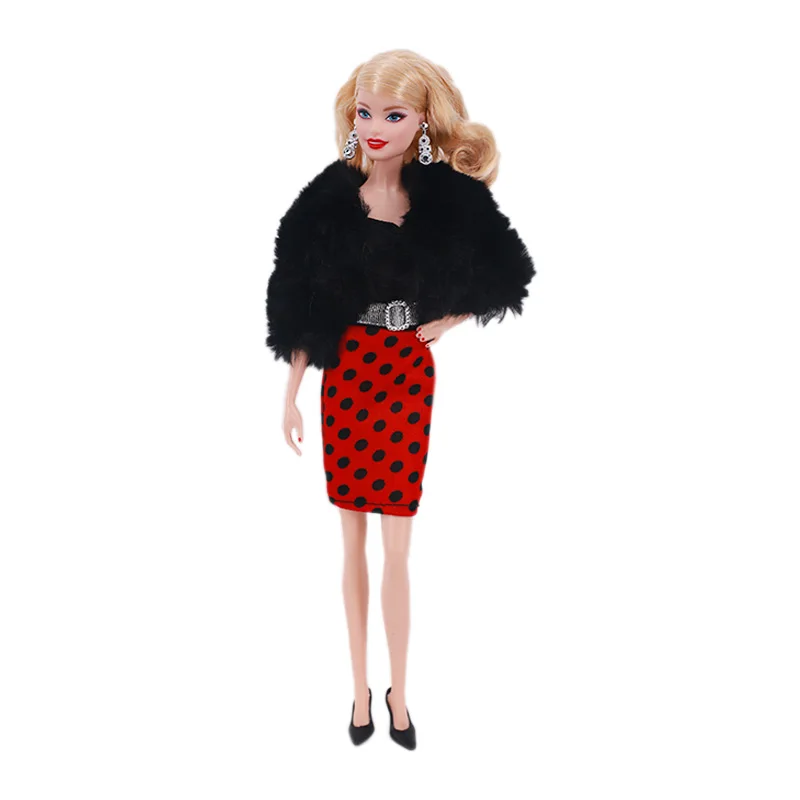 Платье для куклы Barbiees, меховое пальто, кожаная юбка, зимняя теп...
