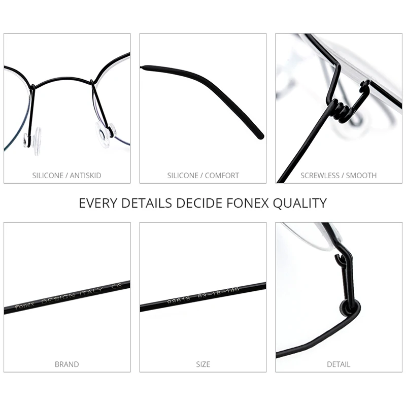 FONEX Мужские и женские очки без винтов, титановые ультралегкие ква...
