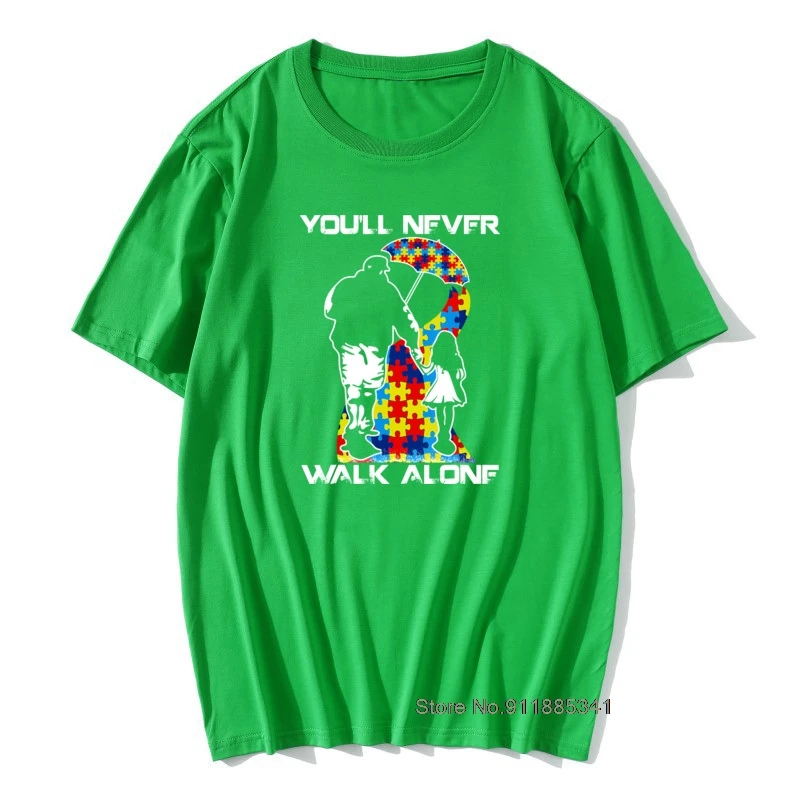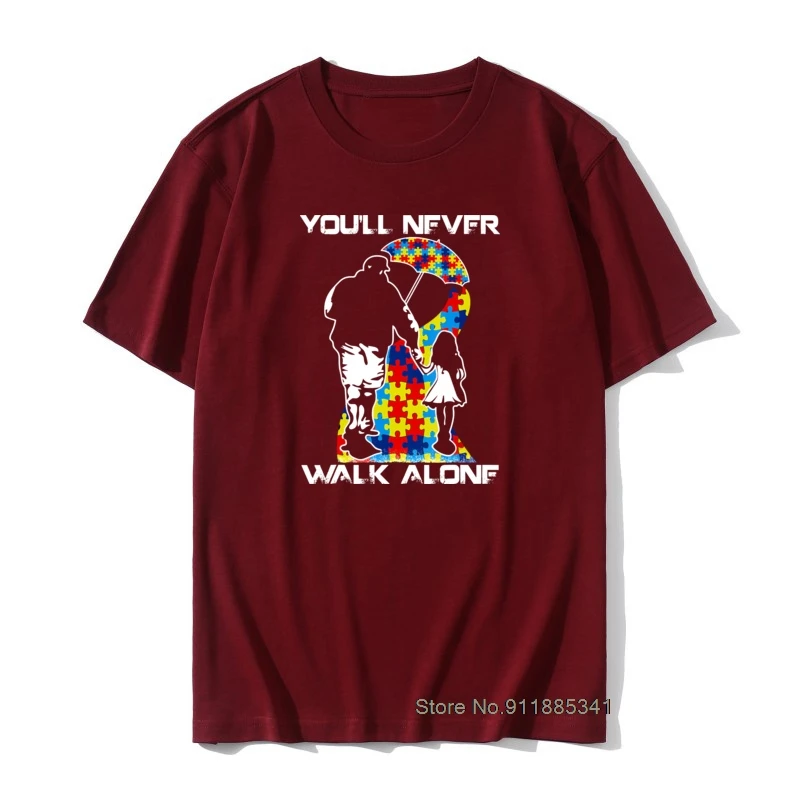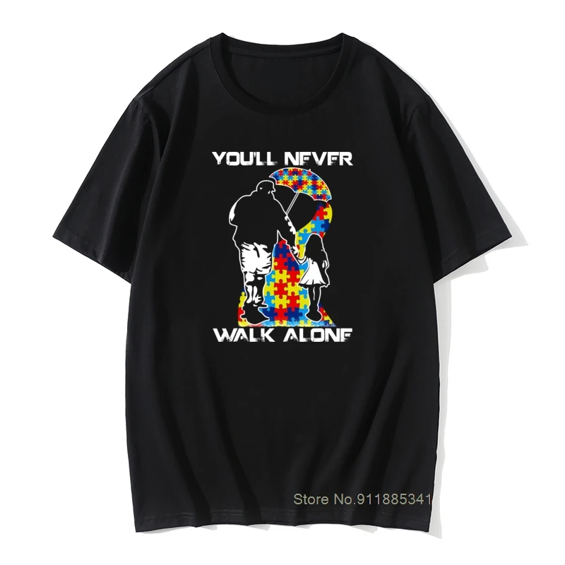 Для мужчин's футболка с круглым вырезом под горло, вы никогда не ходить в одиночку для папы, мамы, дочери и сына информации о проблеме аутизма Для Мужчин's 3D футболки Autismo аутистов забавная футболка