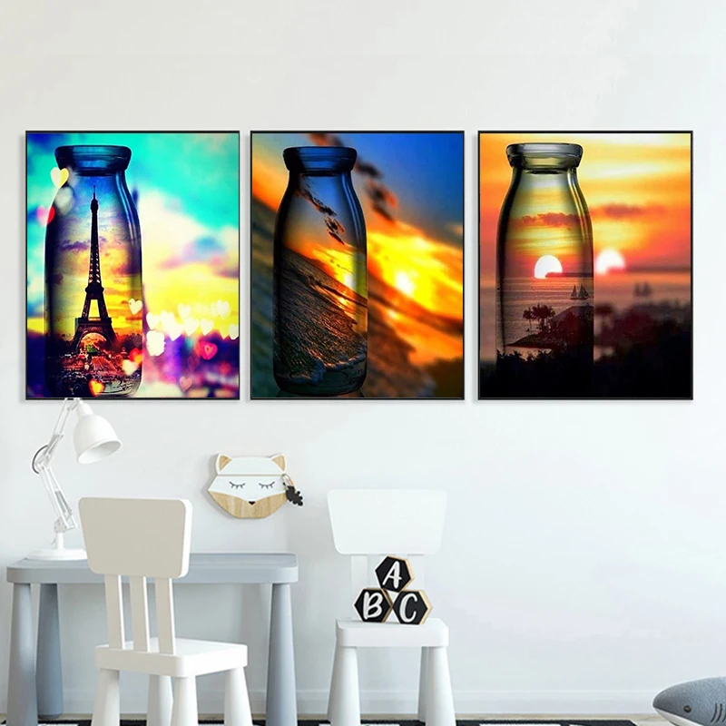 Стеклянный пейзаж, картина маслом, 3 шт., живопись маслом по номерам г.