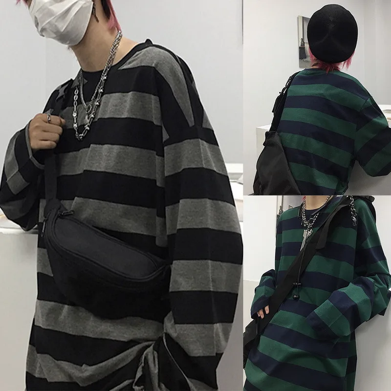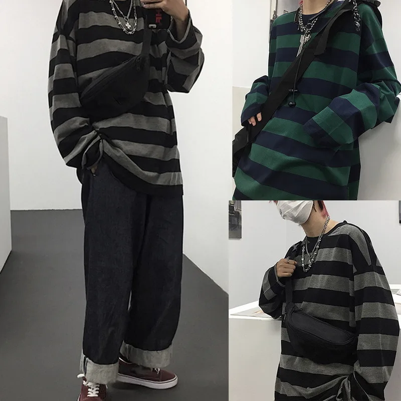 Футболка унисекс в полоску, с длинным рукавом, в стиле Харадзюку