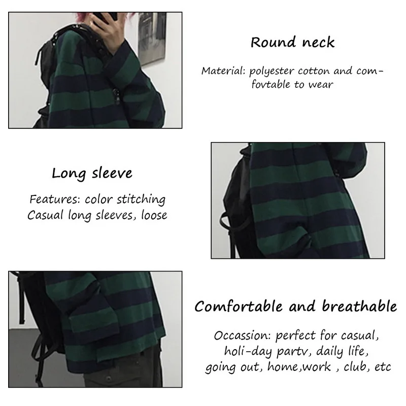 Модная Толстовка в полоску в стиле Харадзюку, свободная винтажная Т...
