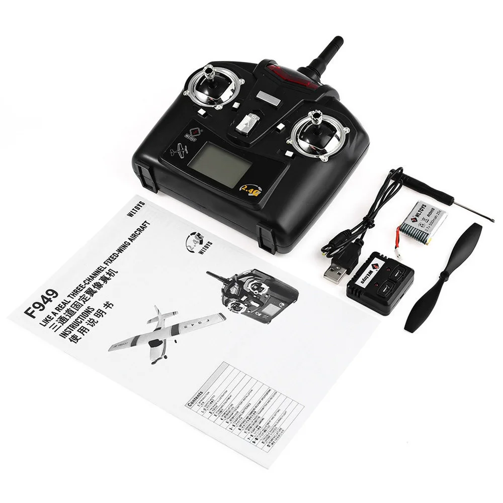 1 * Wltoys F949 самолет 1*2,4G передатчик (модель 2) 2*3,7 в 500 мАч литий-полимерный аккумулятор 3 * запасной пропеллер 1 * Зарядное устройство USB 1 * отвертка 1 * Руководство пользователя на английском языке