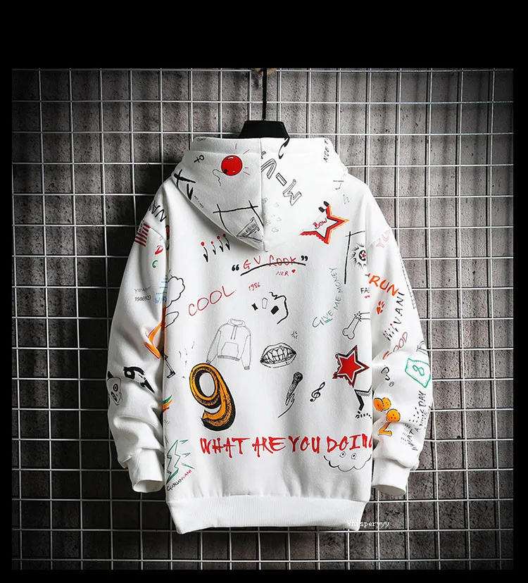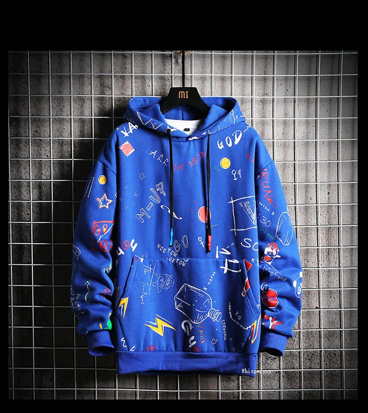 Мужская толстовка с капюшоном в стиле хип-хоп Harajuku, Японская ул...
