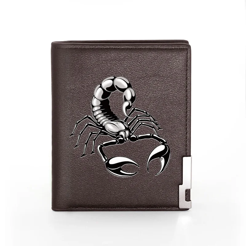 Индивидуальный с изображением скорпиона и дизайнерской печатью кожаный бумажник для мужчин для женщин девушек цепочка на счастье очаровательный кредитной карты держатель короткий бумажник кошелек мужской