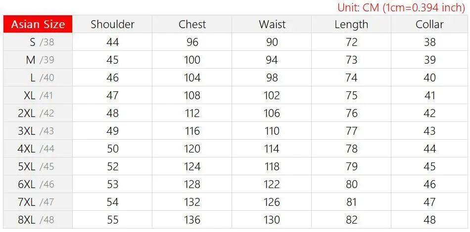 asian sizeS/M/L/XL/2XL/3XL/4XL/5XL/6XL/7XL/8XL