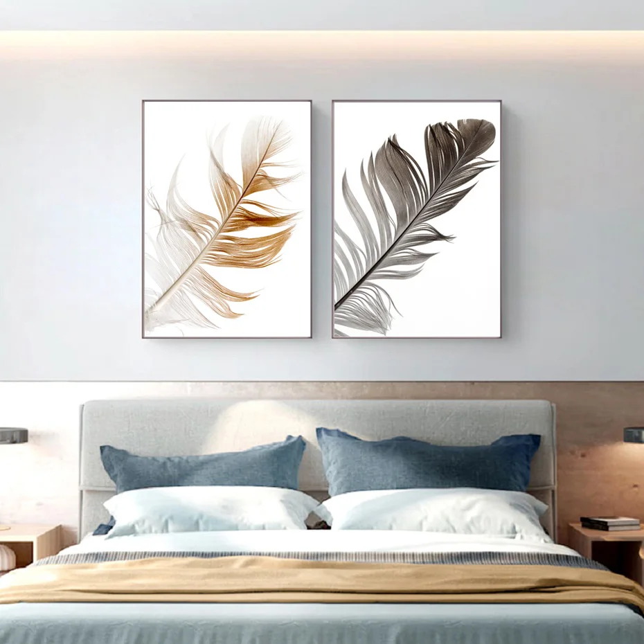 Минимализм красочные перья искусство белый фон холст живопись плакат настенное Искусство Печать украшение для дома