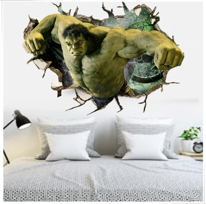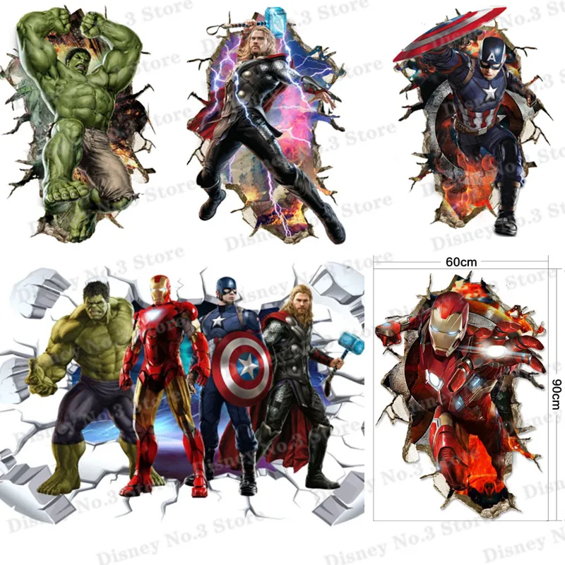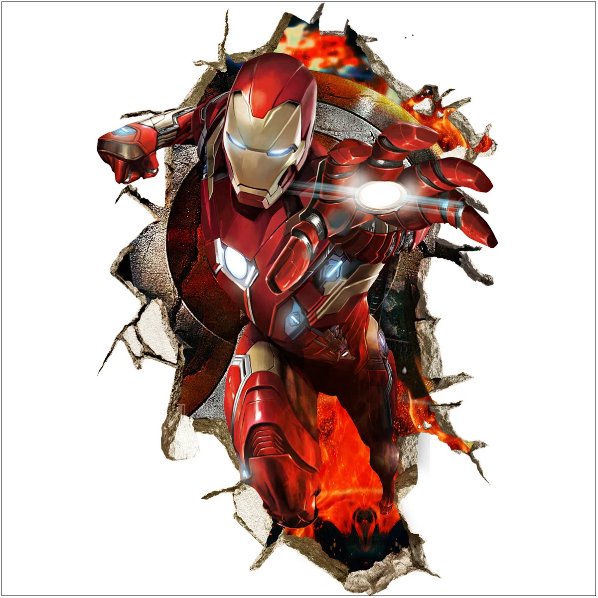 3D наклейки на стену с супергероями Марвел, спайдерменом, Железным человеком, для детей, для спальни, аксессуары через стену, наклейки для домашнего декора