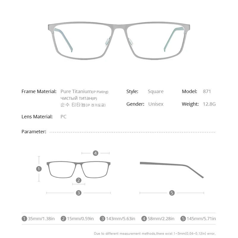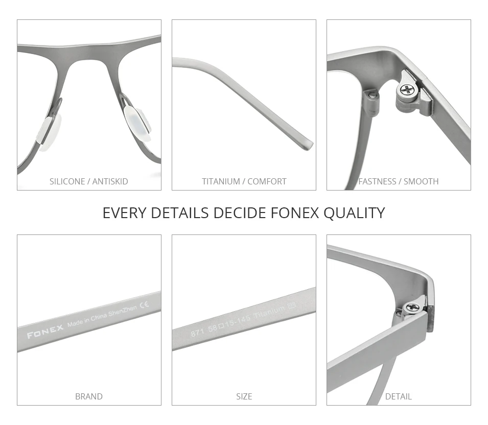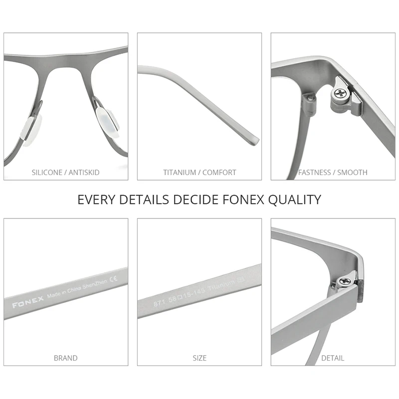 FONEX Мужская квадратная оправа для очков, оправа из чистого титана для очков для коррекции близорукости, модель 2020, 871