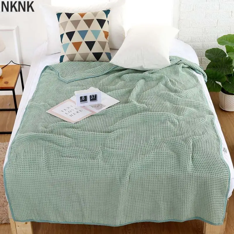Мягкие покрывала хлопковое вафельное покрывало для кровати, легкое ...